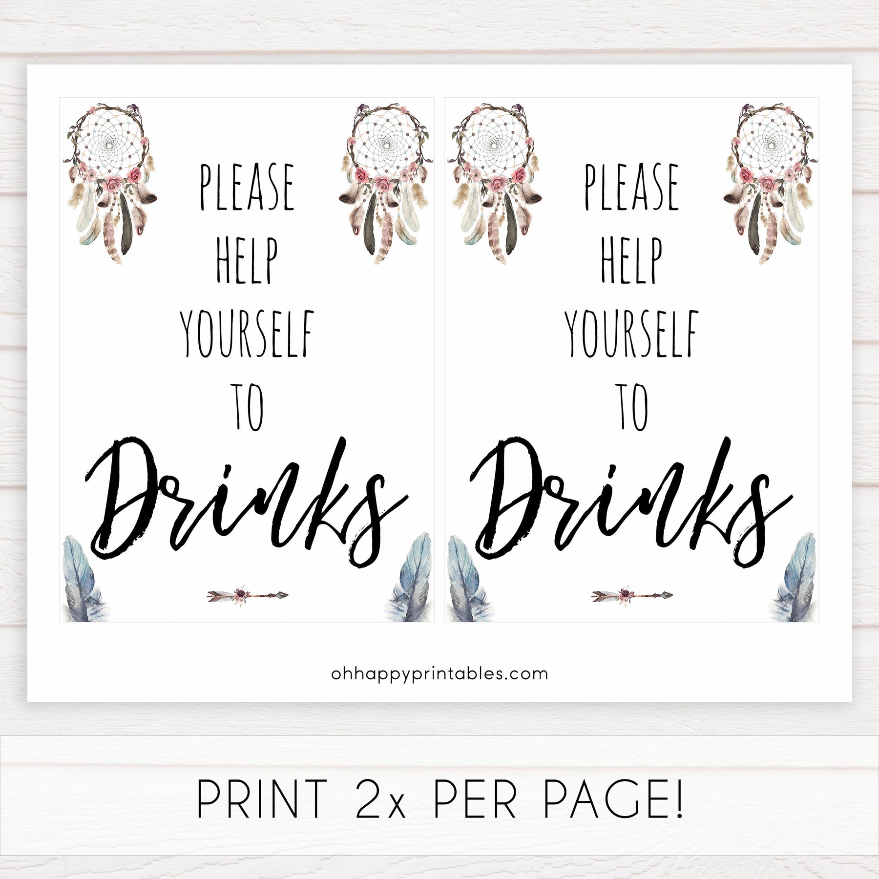 Add the finishing touch to your baby shower with this 'Drinks' table sign.