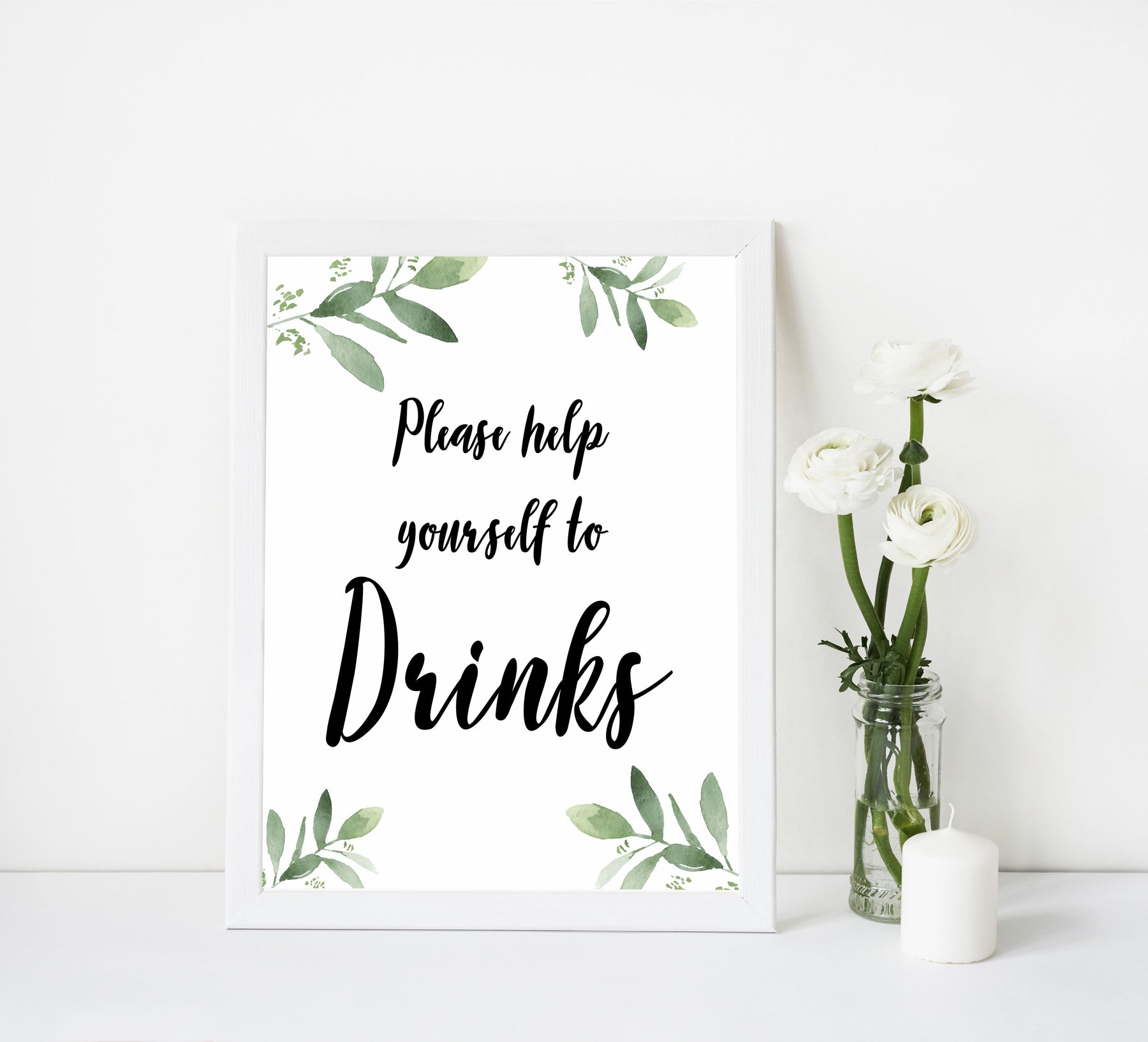 Drinks baby shower signs, printable baby shower signs, botanical baby shower decor, floral baby table signs