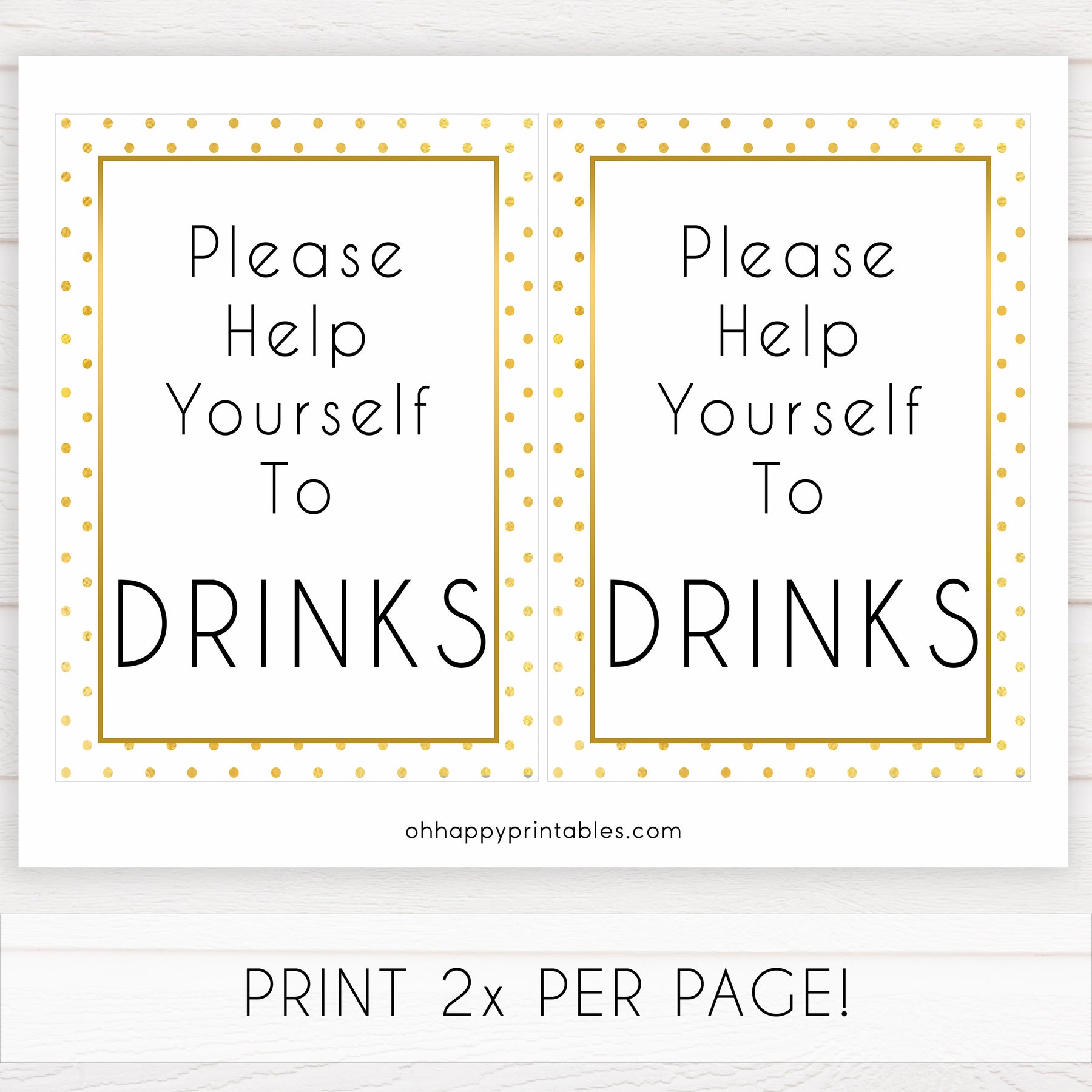 drinks baby table sign, drinks table signs, Printable baby shower games, baby gold dots fun baby games, baby shower games, fun baby shower ideas, top baby shower ideas, gold glitter shower baby shower, friends baby shower ideas