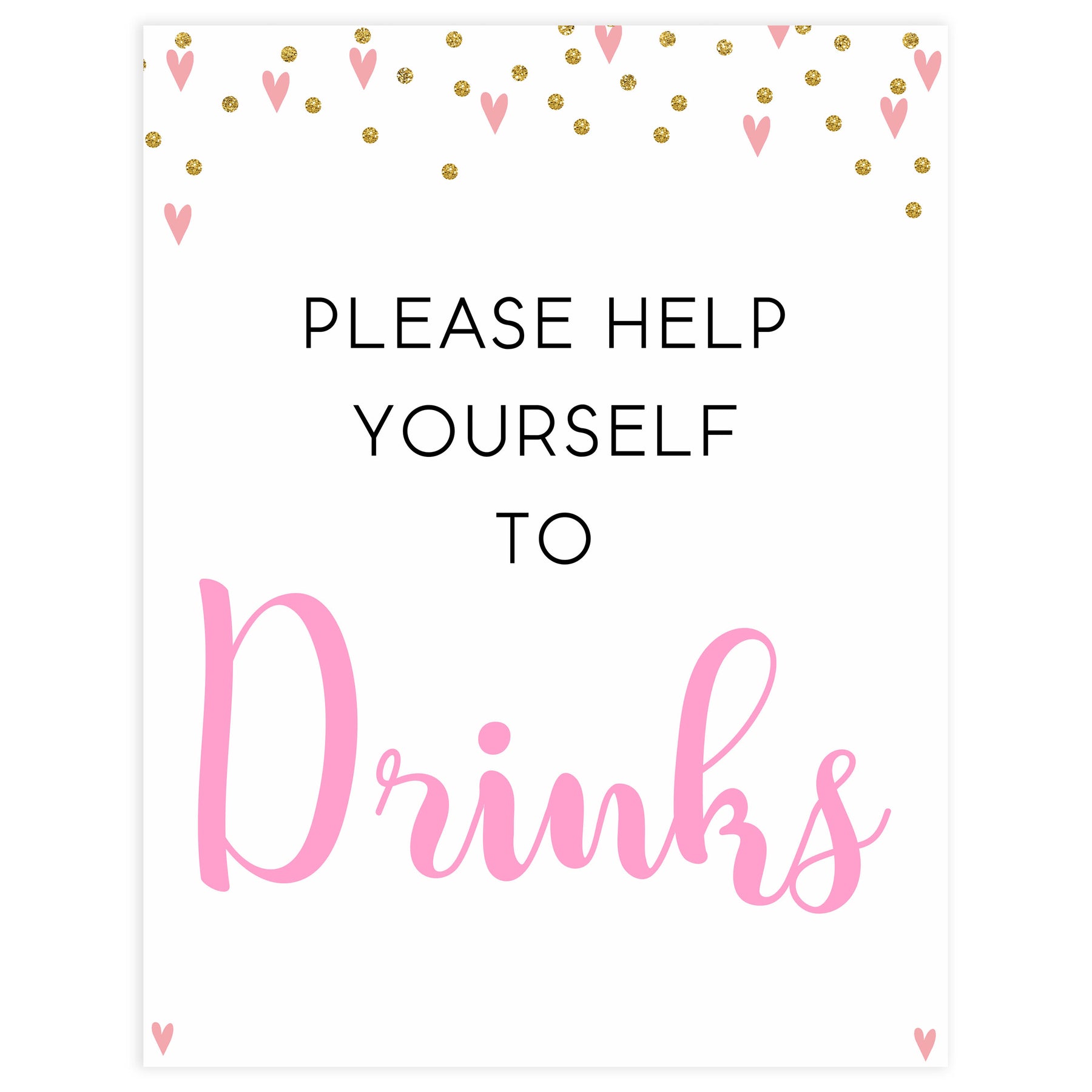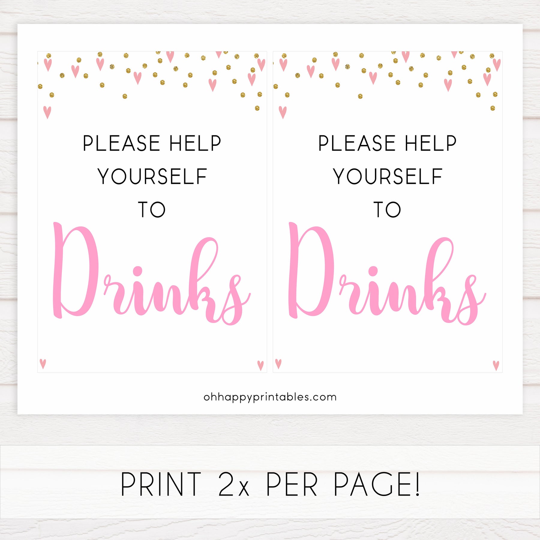 Add the finishing touch to your baby shower with this 'Drinks' table sign.