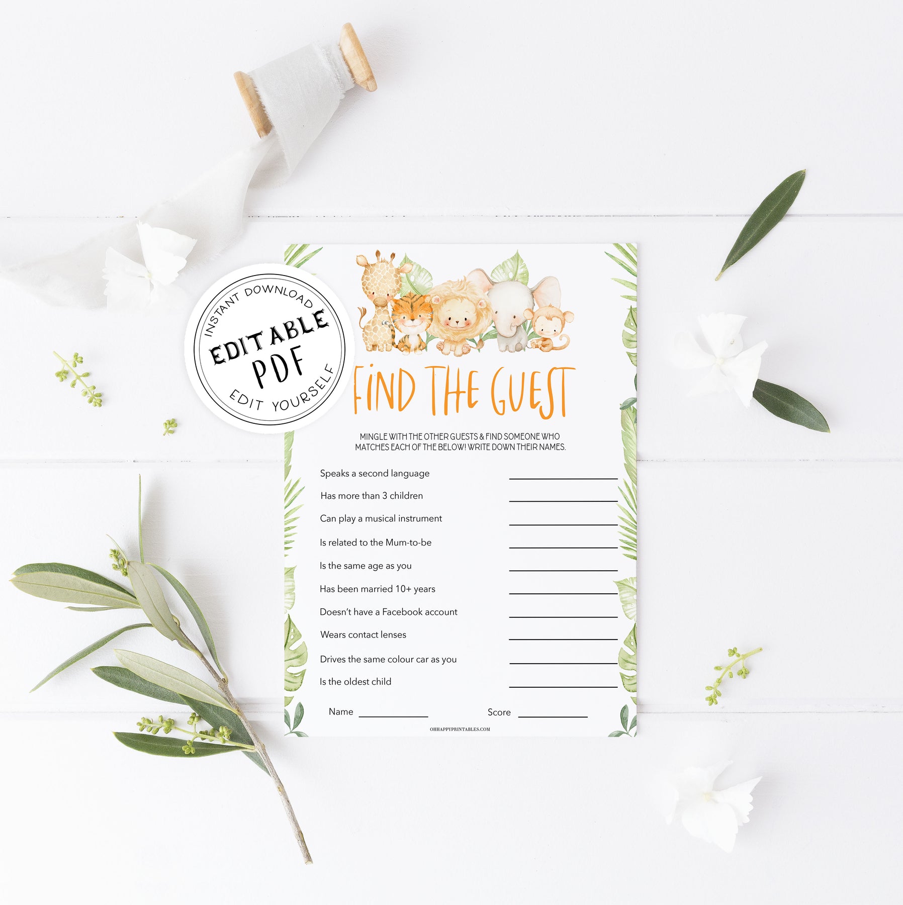 editable find the guest baby game, Printable baby shower games, safari animals baby games, baby shower games, fun baby shower ideas, top baby shower ideas, safari animals baby shower, baby shower games, fun baby shower ideas