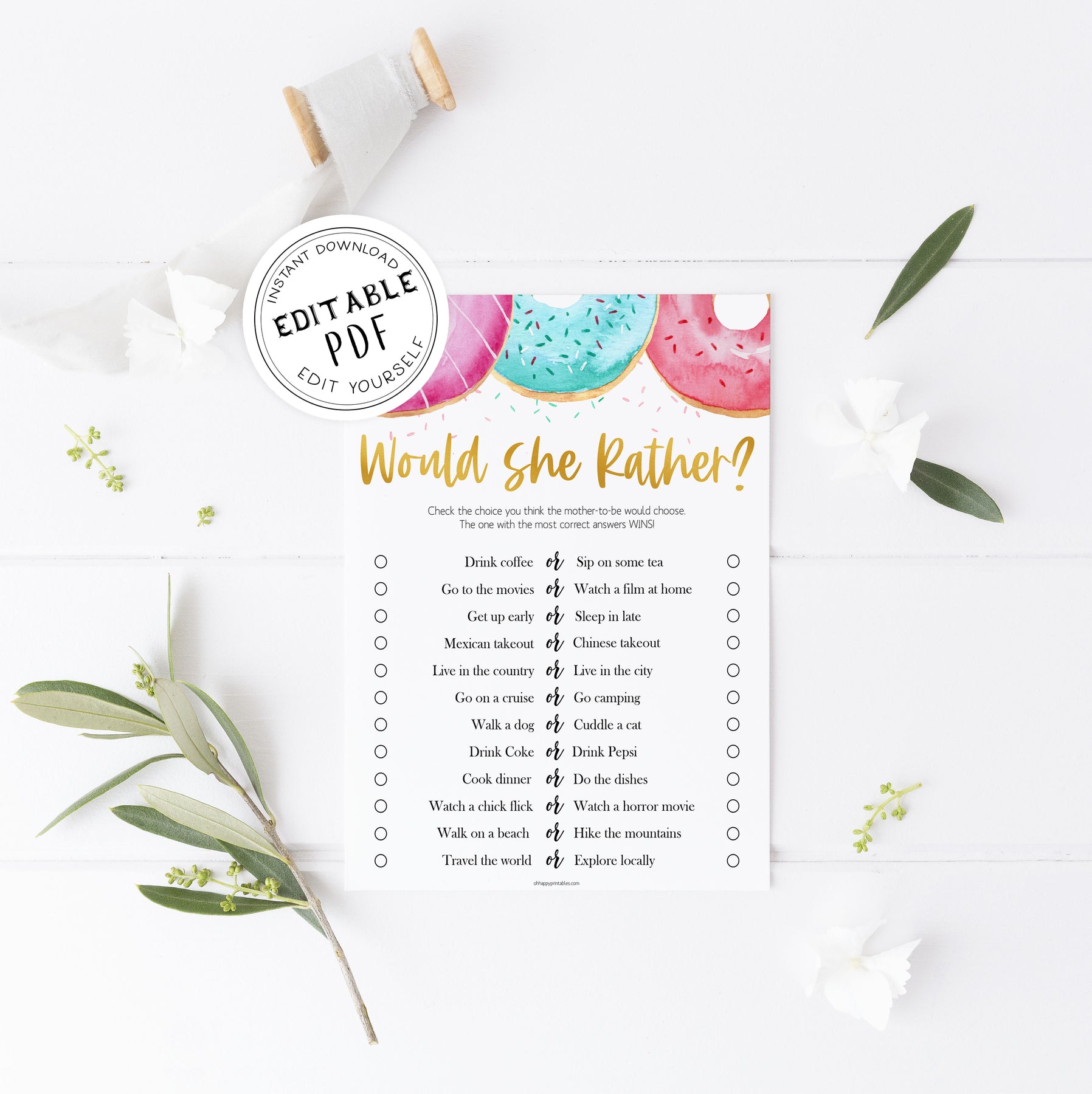 Would She Rather is a popular game that puts the new mother-to-be in the spotlight! Guess what she would do in each of the scenarios! A fun baby shower game that your guests will love to play.