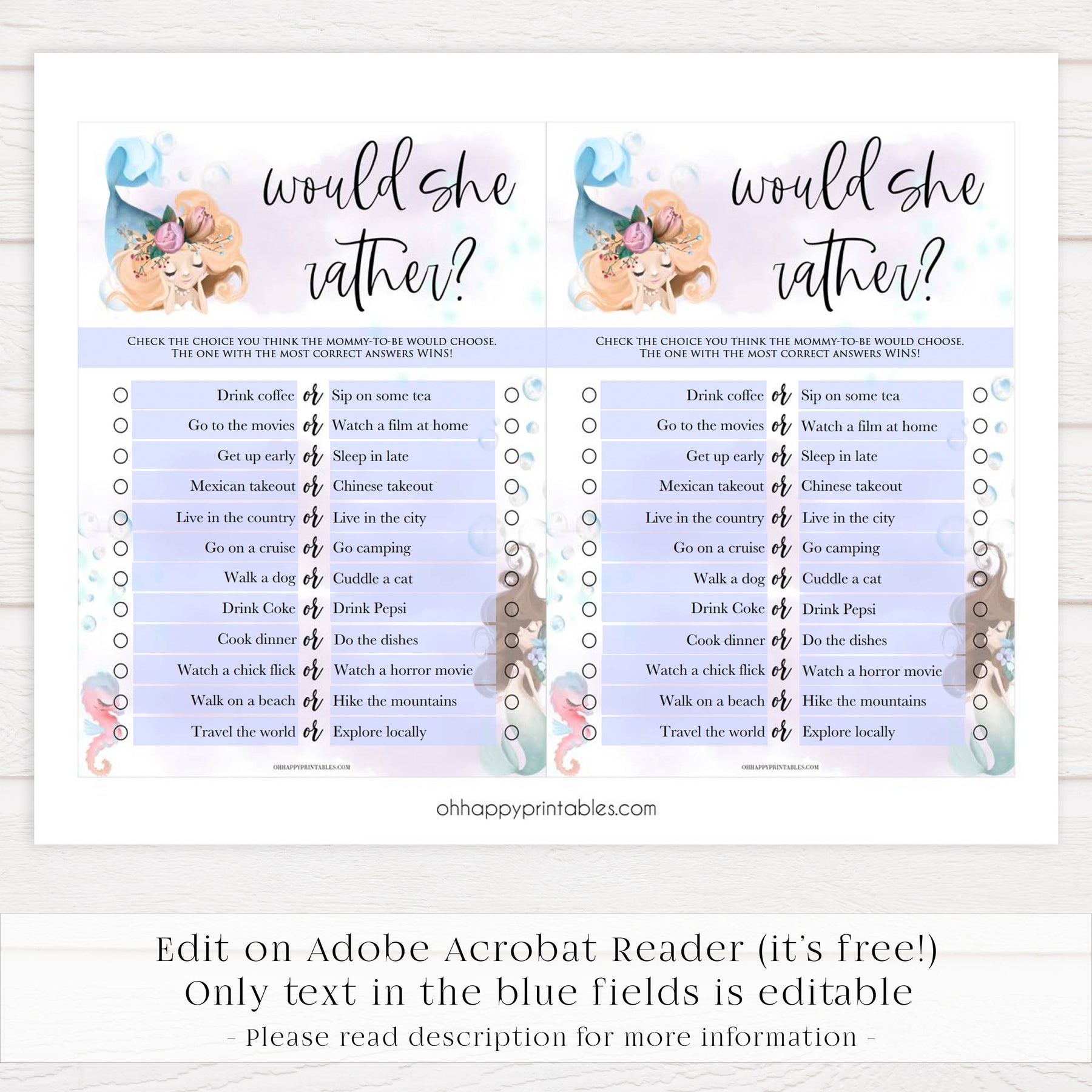 EDITABLE Would She Rather - Mermaid