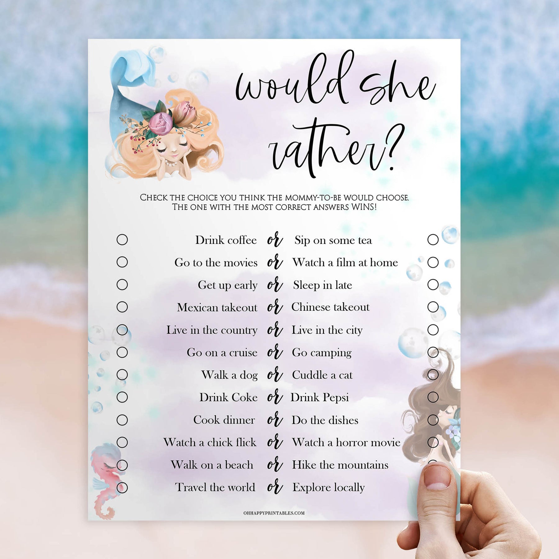 would she rather baby game, Printable baby shower games, little mermaid baby games, baby shower games, fun baby shower ideas, top baby shower ideas, little mermaid baby shower, baby shower games, pink hearts baby shower ideas