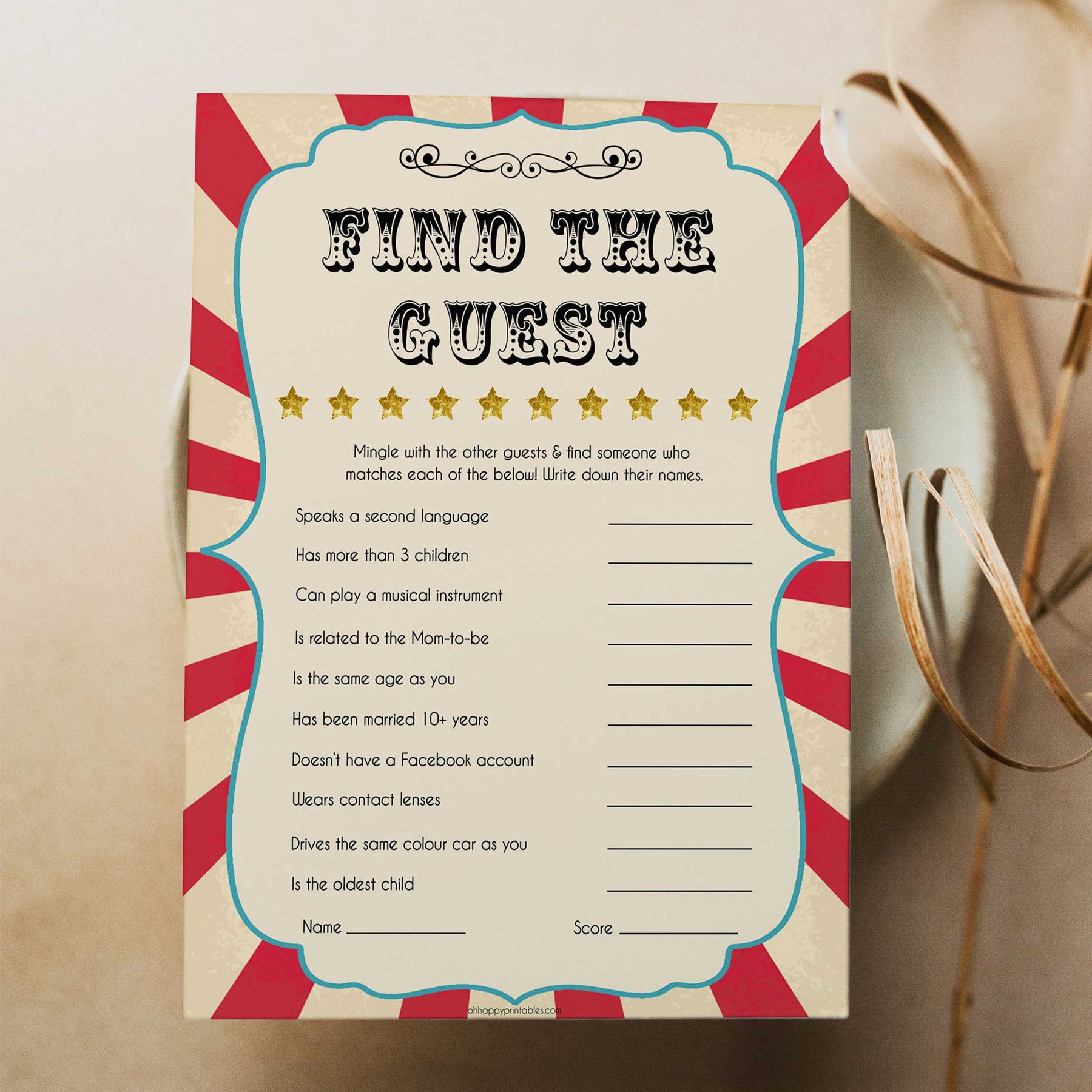 Circus find the guest baby shower games, circus baby games, carnival baby games, printable baby games, fun baby games, popular baby games, carnival baby shower, carnival theme