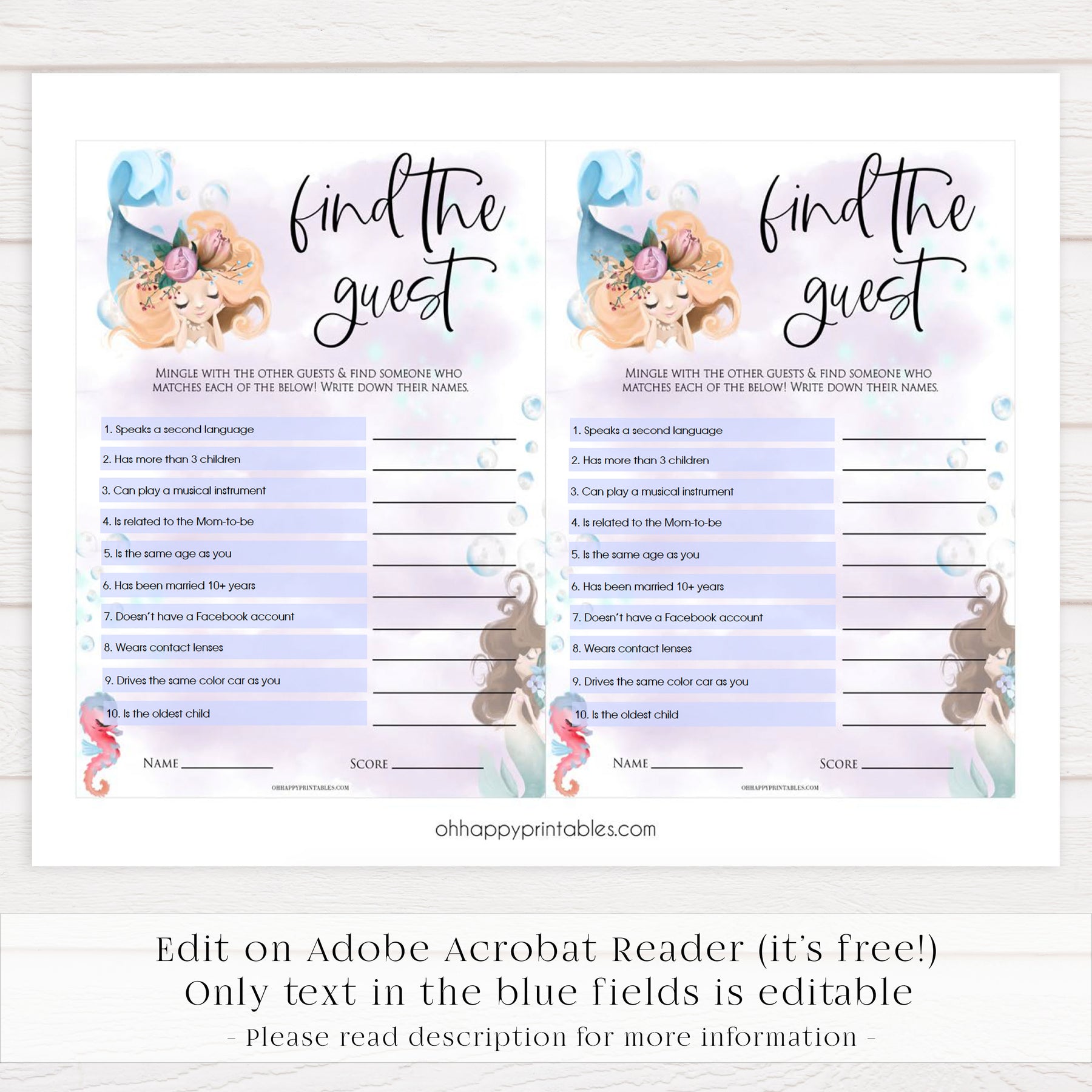 editable find the guest baby games, Printable baby shower games, little mermaid baby games, baby shower games, fun baby shower ideas, top baby shower ideas, little mermaid baby shower, baby shower games, pink hearts baby shower ideas