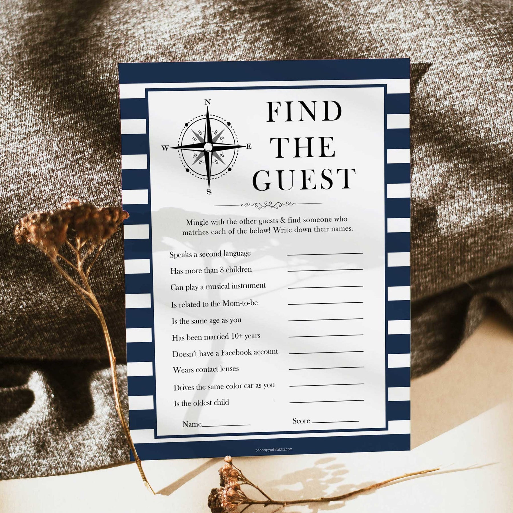 Find the Guest is a great ice breaker game that will help everyone get to know each other at your baby shower. Get ready to ask some questions and mingle like a pro to win! All you need to do is download the game and print at home. It couldn't be easier.