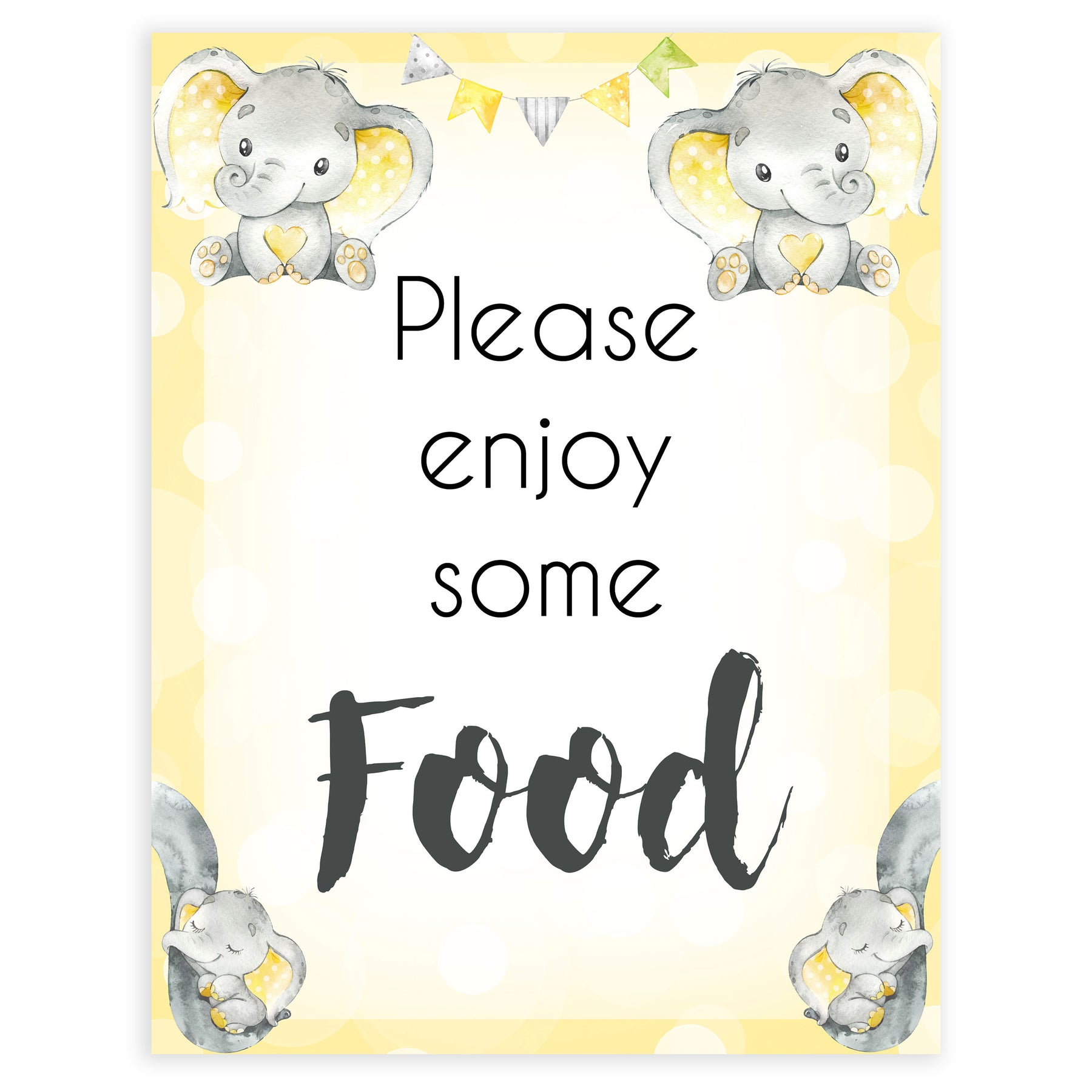 Yellow elephants, neutral baby shower signs, food baby signs, baby shower signs, baby shower decor, gender reveal ideas, top baby shower ideas, printable baby signs