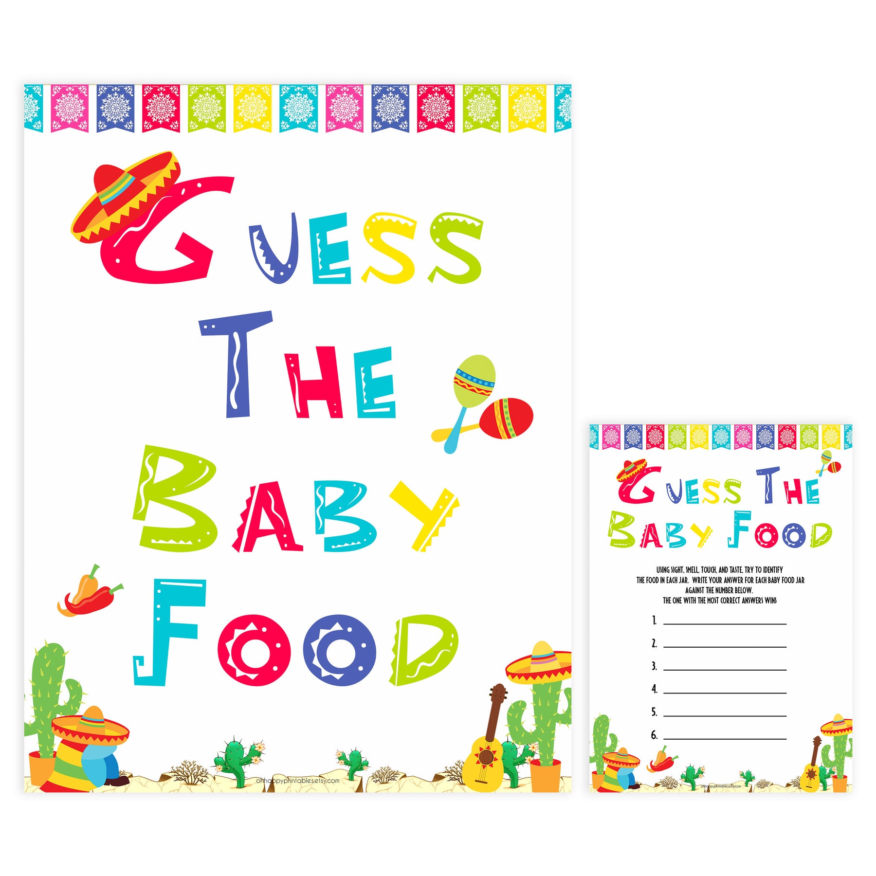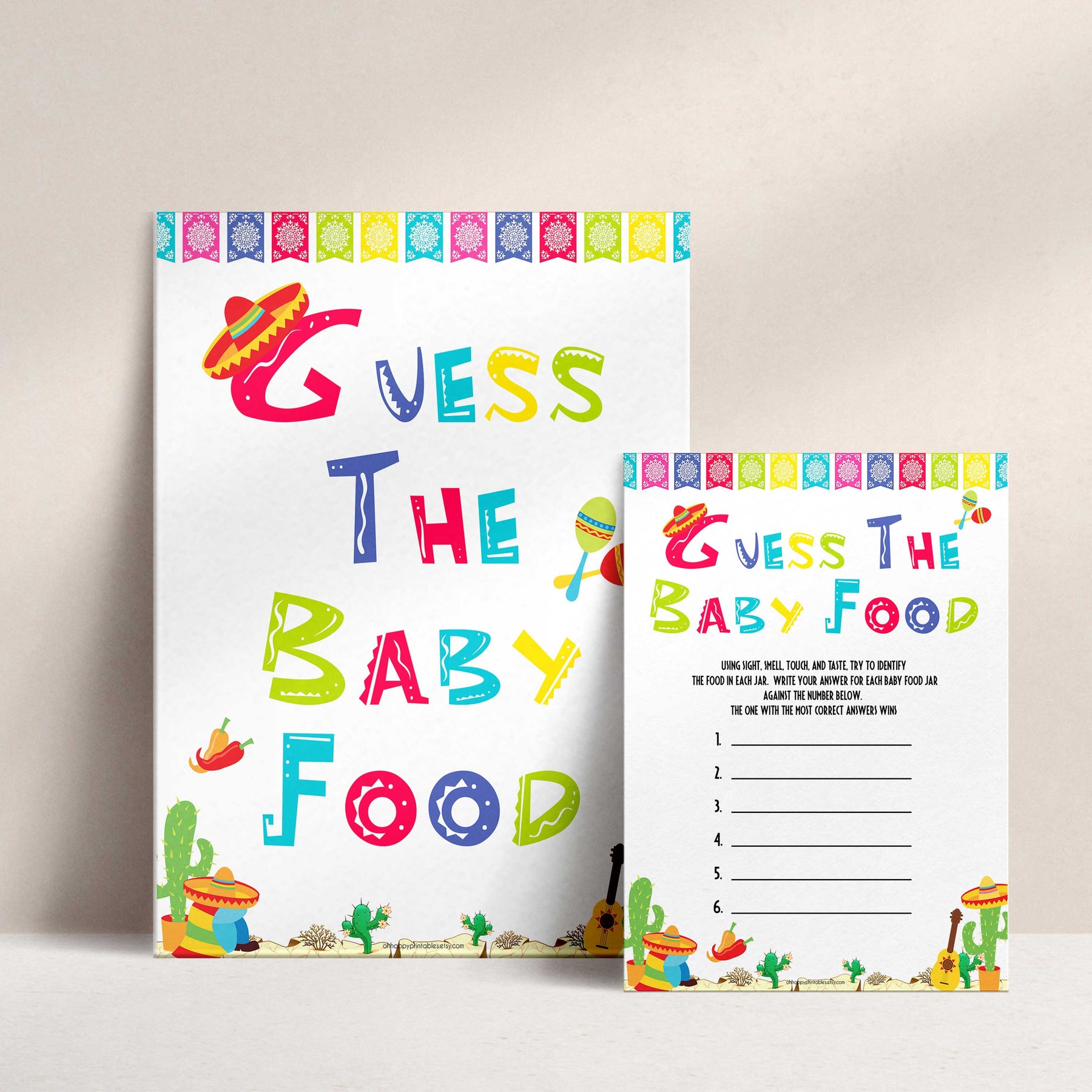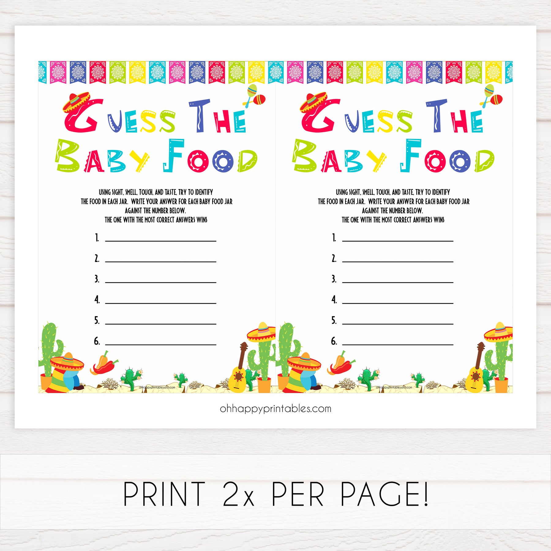 This hilarious baby shower game is perfect ice breaker for any baby shower! Simply taste each baby food and have your friends fill out the game card with what they think it might be. The one with the most correct answers win!