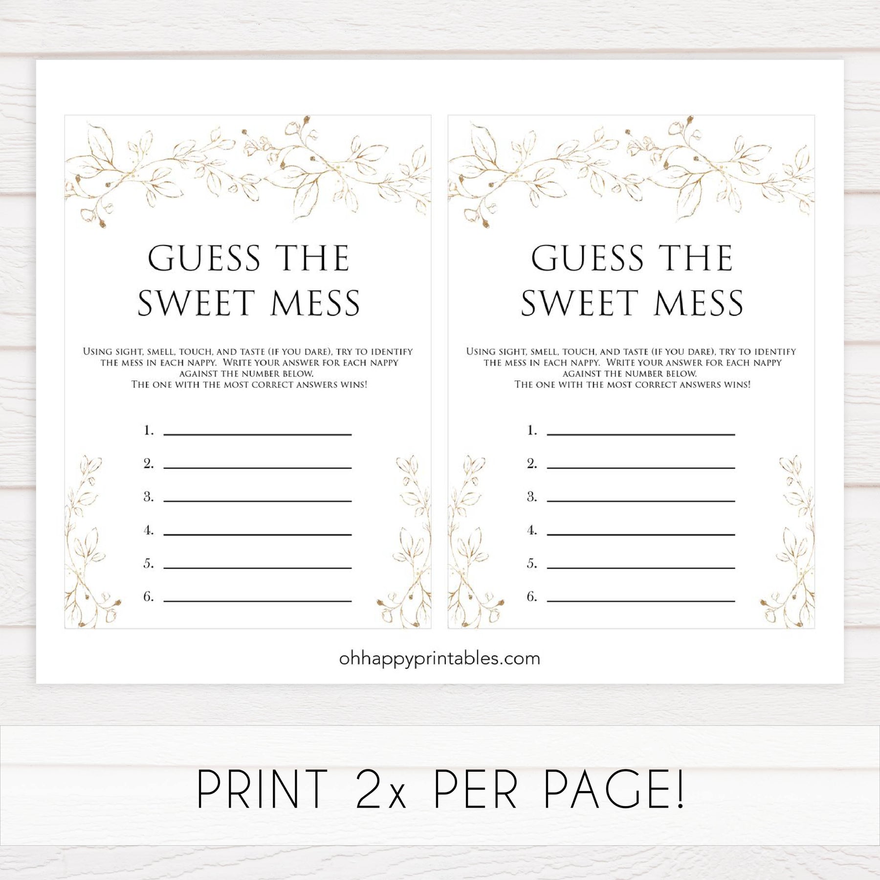guess the sweet mess game, Printable baby shower games, gold leaf baby games, baby shower games, fun baby shower ideas, top baby shower ideas, gold leaf baby shower, baby shower games, fun gold leaf baby shower ideas