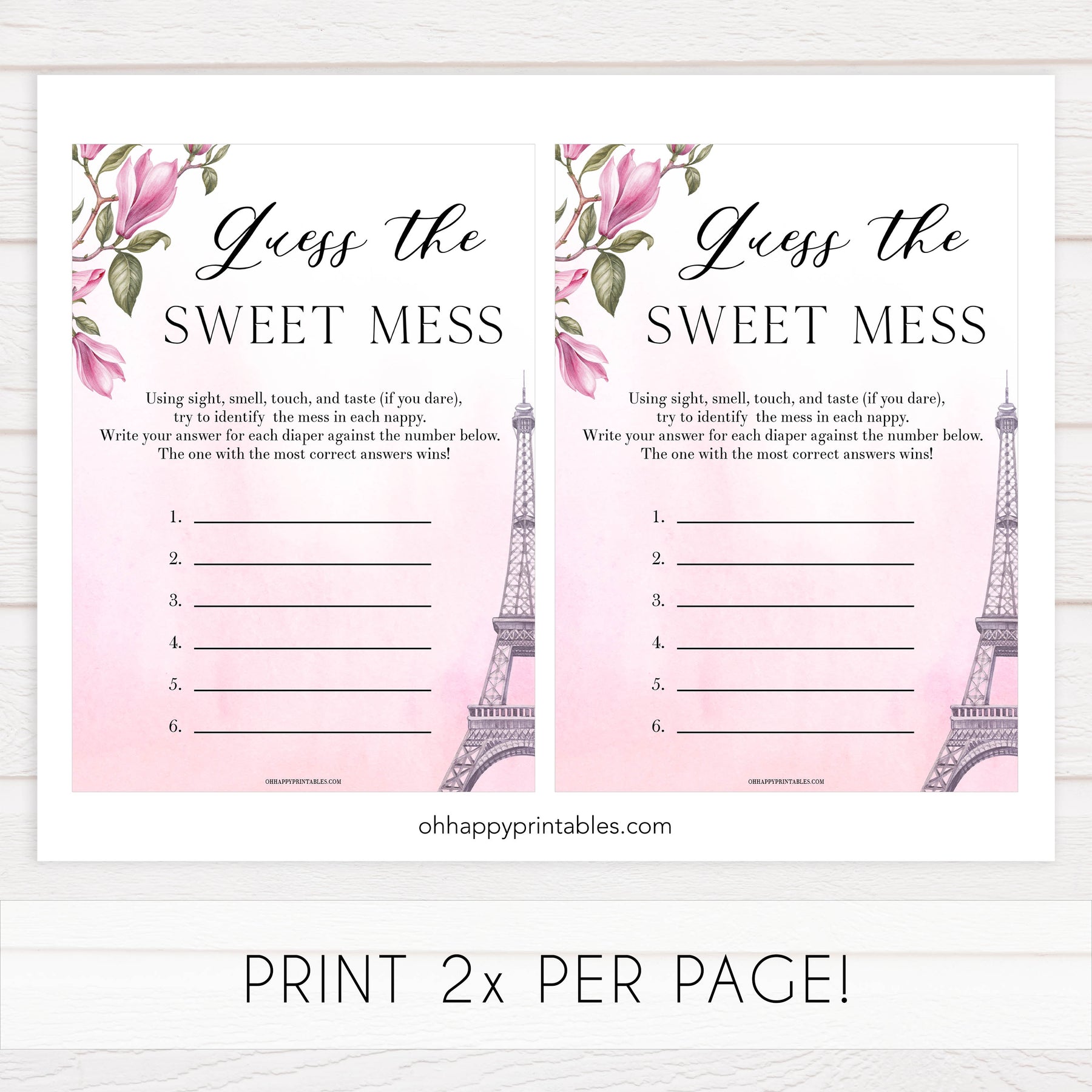 guess the sweet mess baby game, Paris baby shower games, printable baby shower games, Parisian baby shower games, fun baby shower games