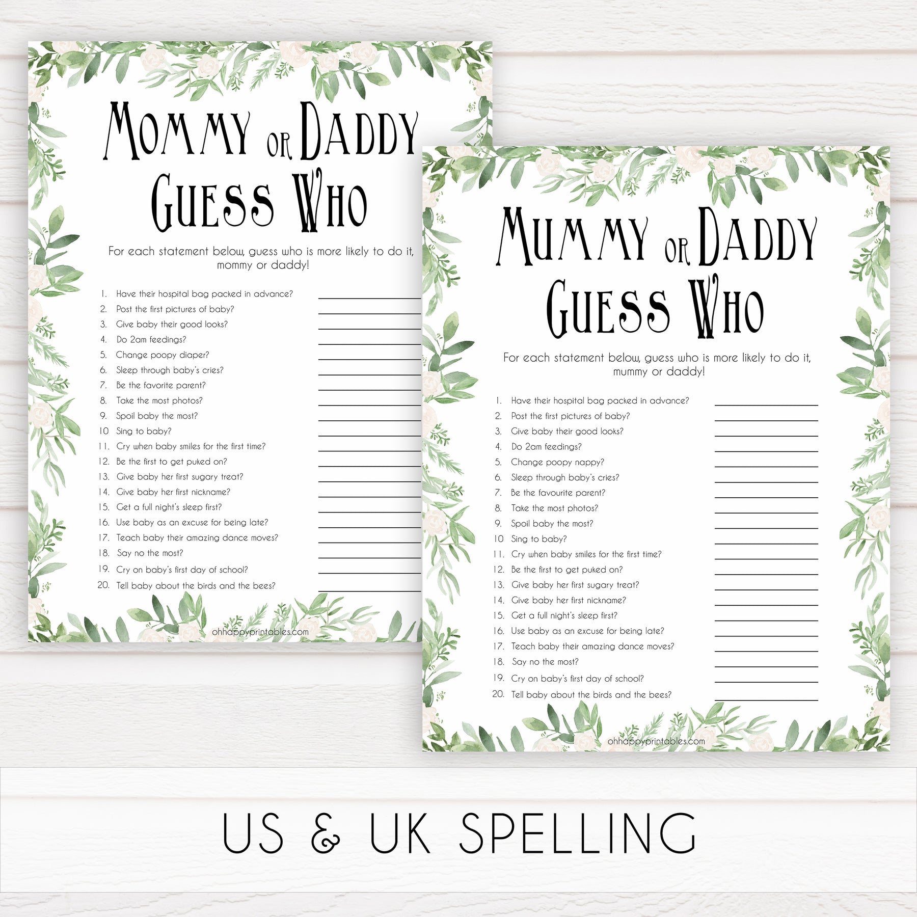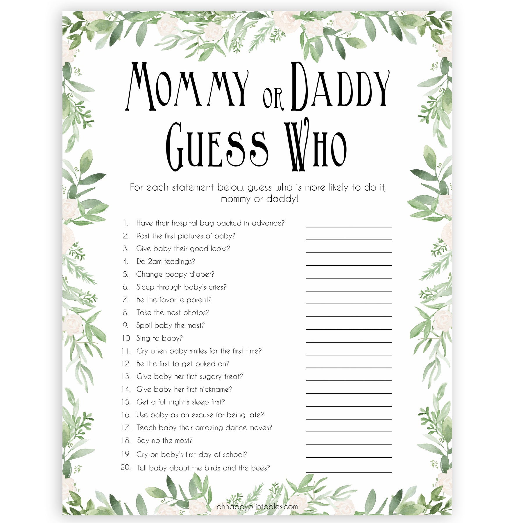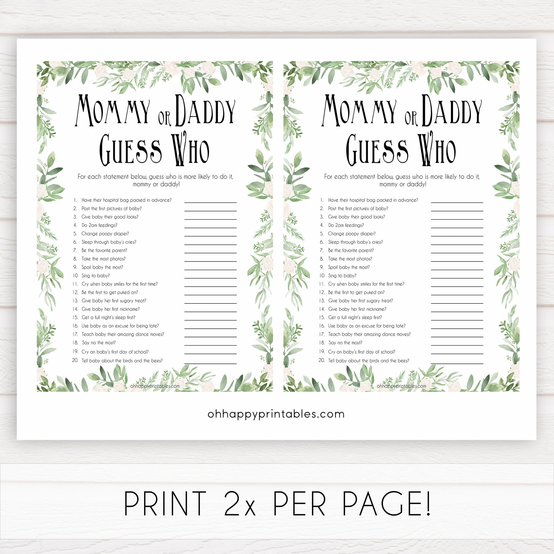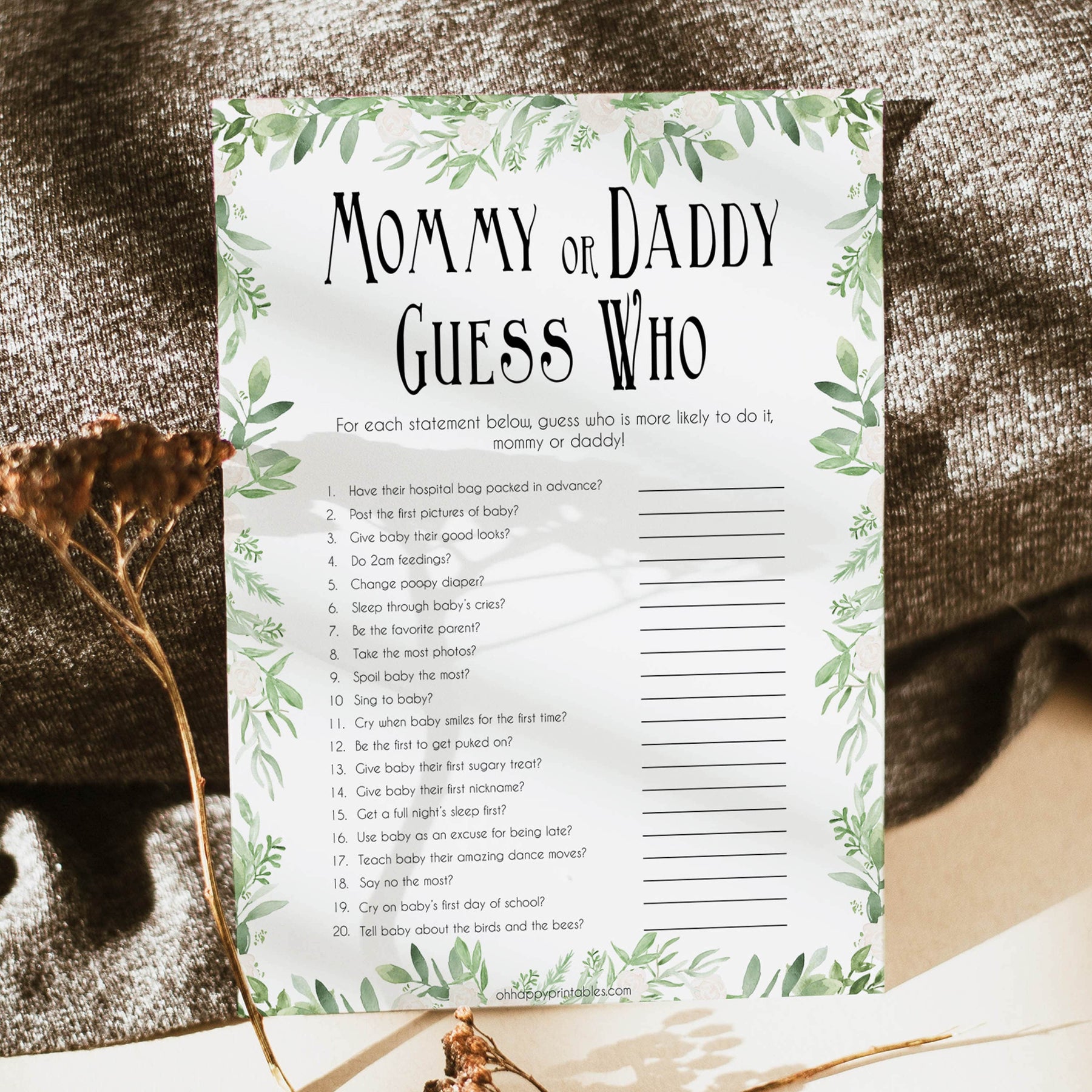 Mommy or Daddy Guess Who Baby Game, Printable Baby Shower Games,Greenery Baby Games, Floral Guess Who Baby Game, Mommy Daddy Guess Who, printable baby shower games, fun baby shower games, popular baby shower games