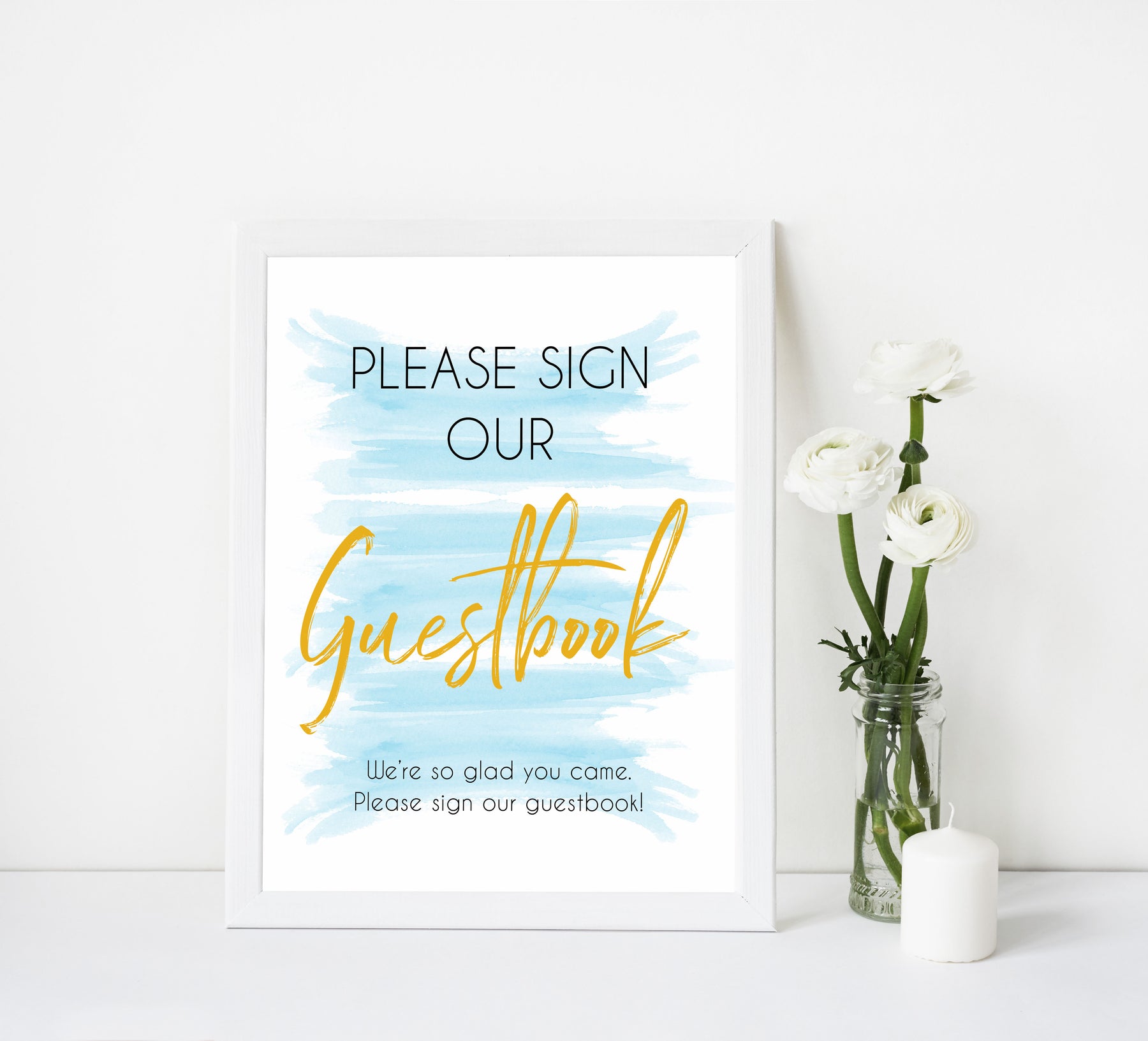 Add the finishing touch to your baby shower with this 'Guestbook' table sign.