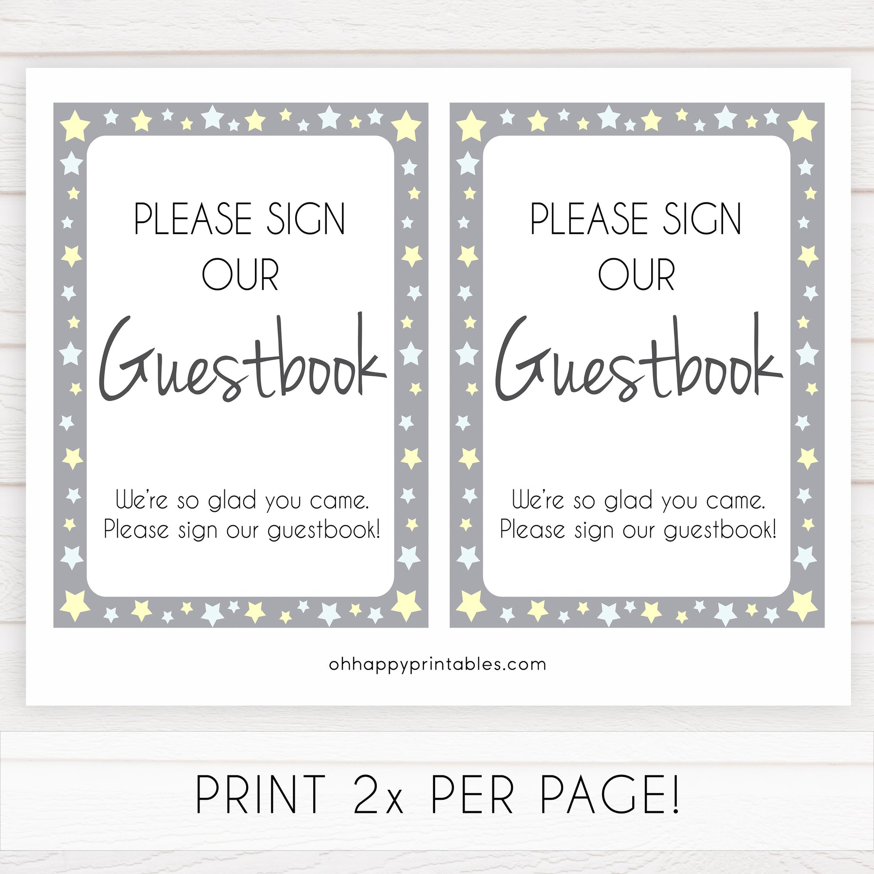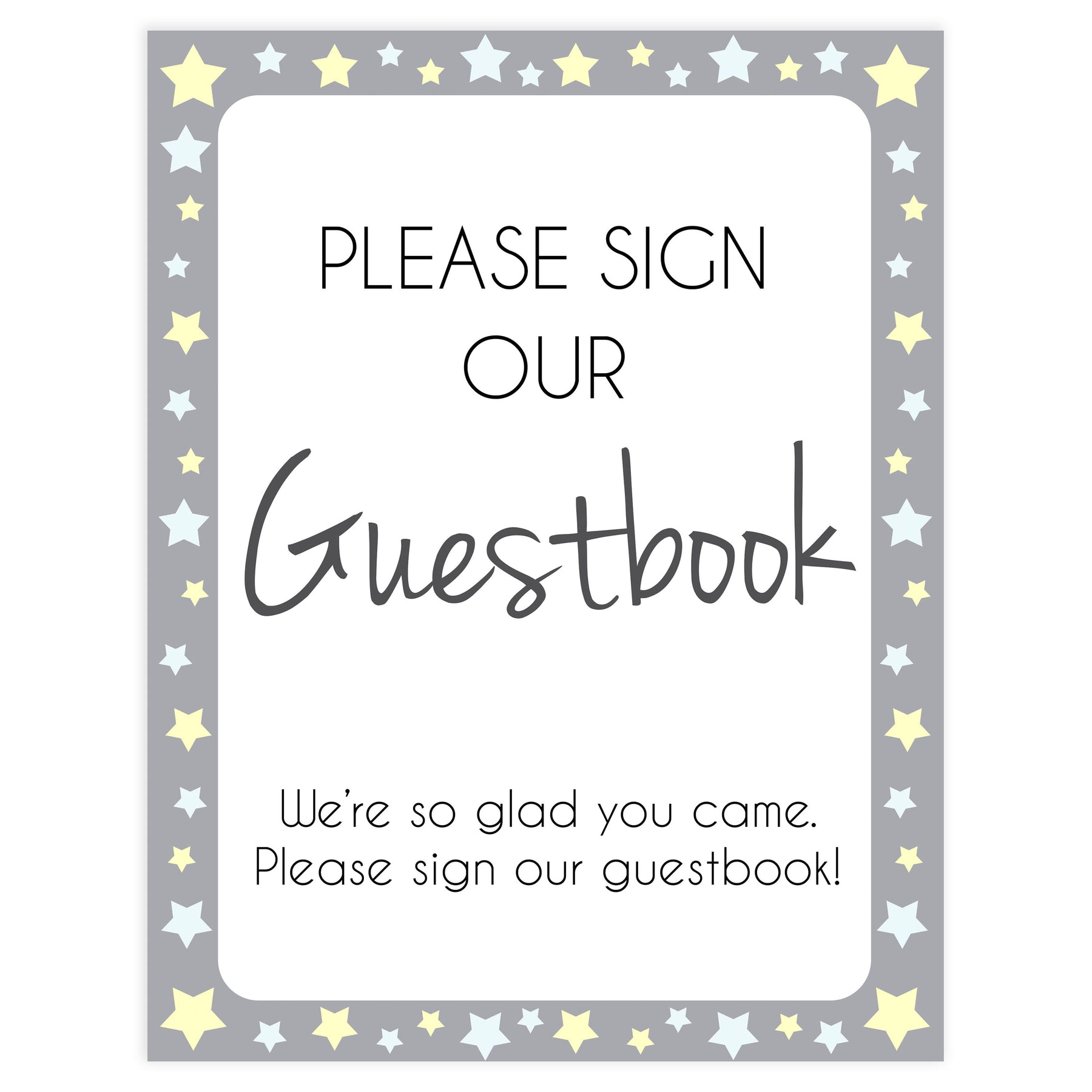 Guestbook Sign - Grey & Yellow Stars