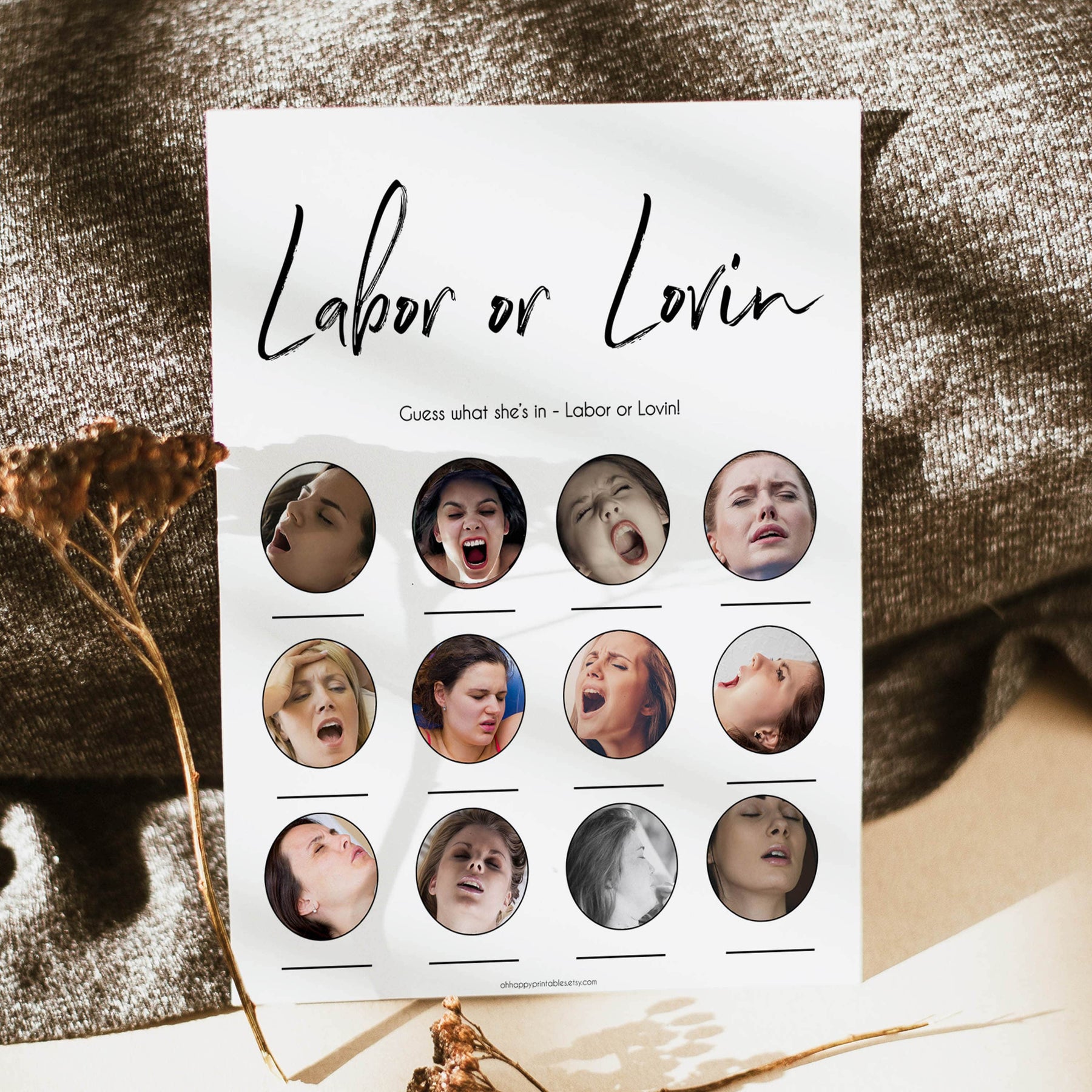 Our printable Labour or Lovin game is a hilarious baby shower game that's perfect for those who like to have a bit of fun! Guess whether the picture is a woman in labour, or from a XXX film. Our printable Labour or Lovin game comes complete with answer sheet, and is available in both UK and US spelling and in two sizes. All you need to do is download and print at home, it couldn't be easier.