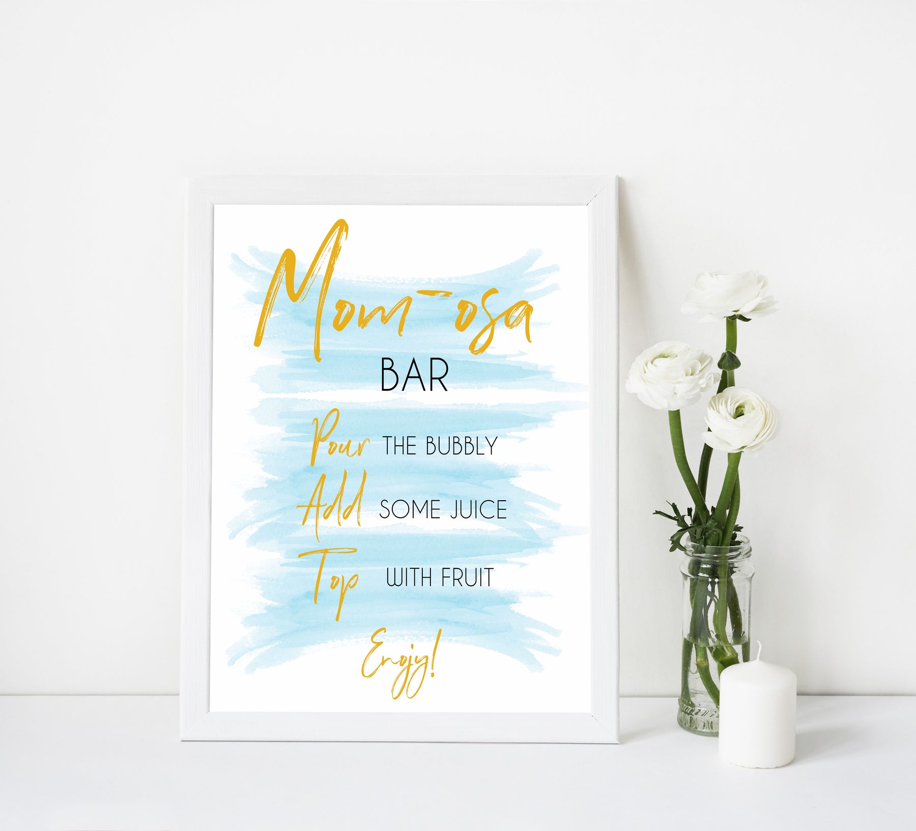 blue swash baby signs, momosa baby shower sign, printable baby signs, fun baby shower ideas, baby shower decor
