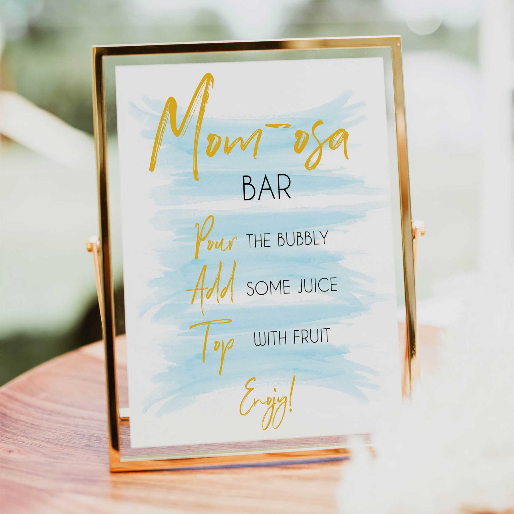 Add the finishing touch to your baby shower with this 'Momosa' table sign.