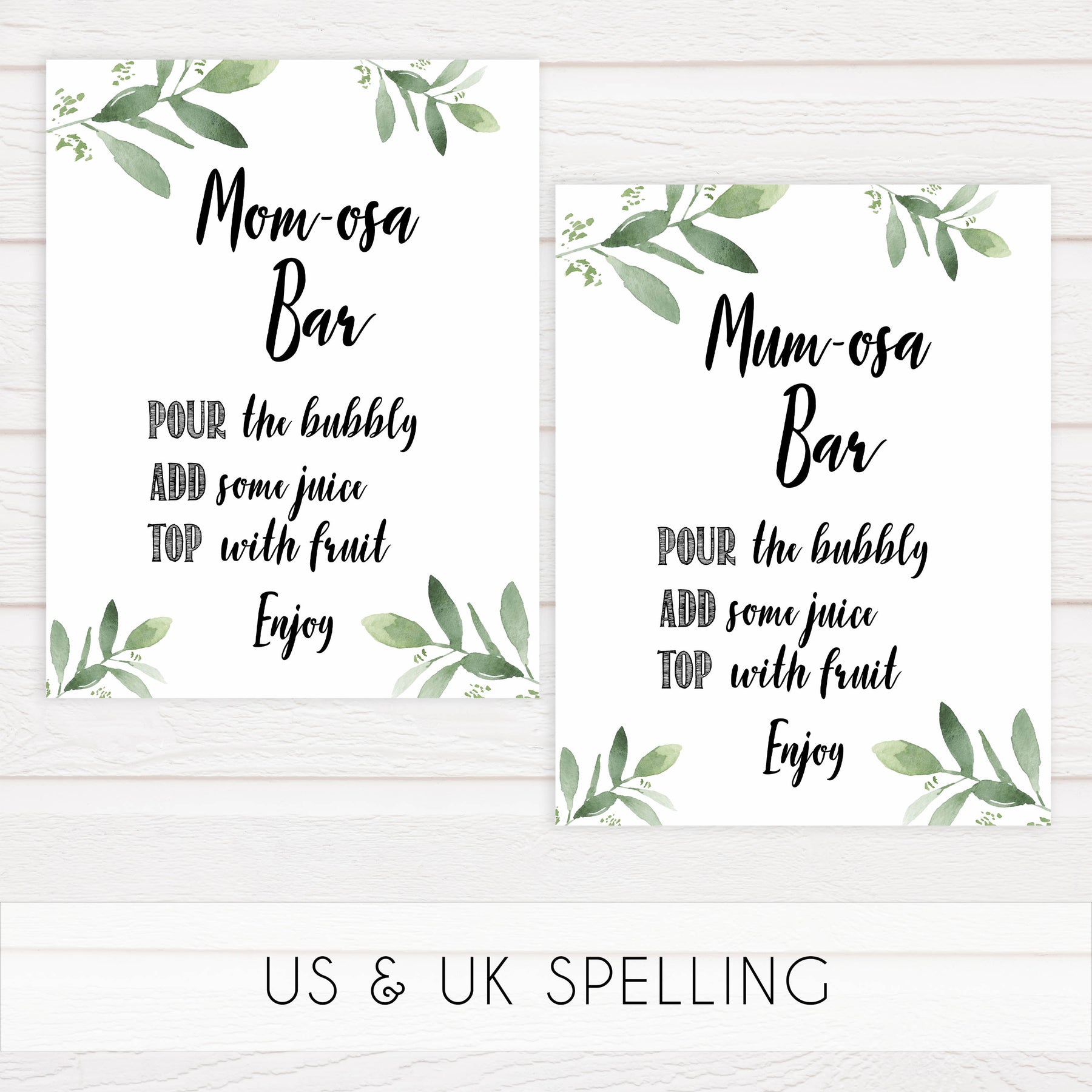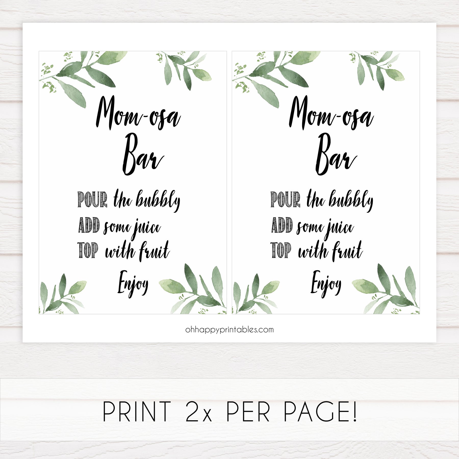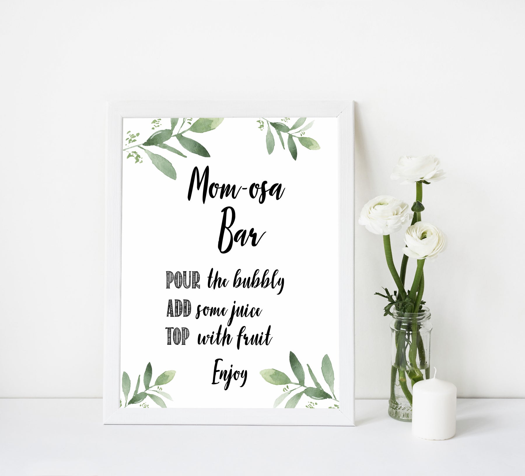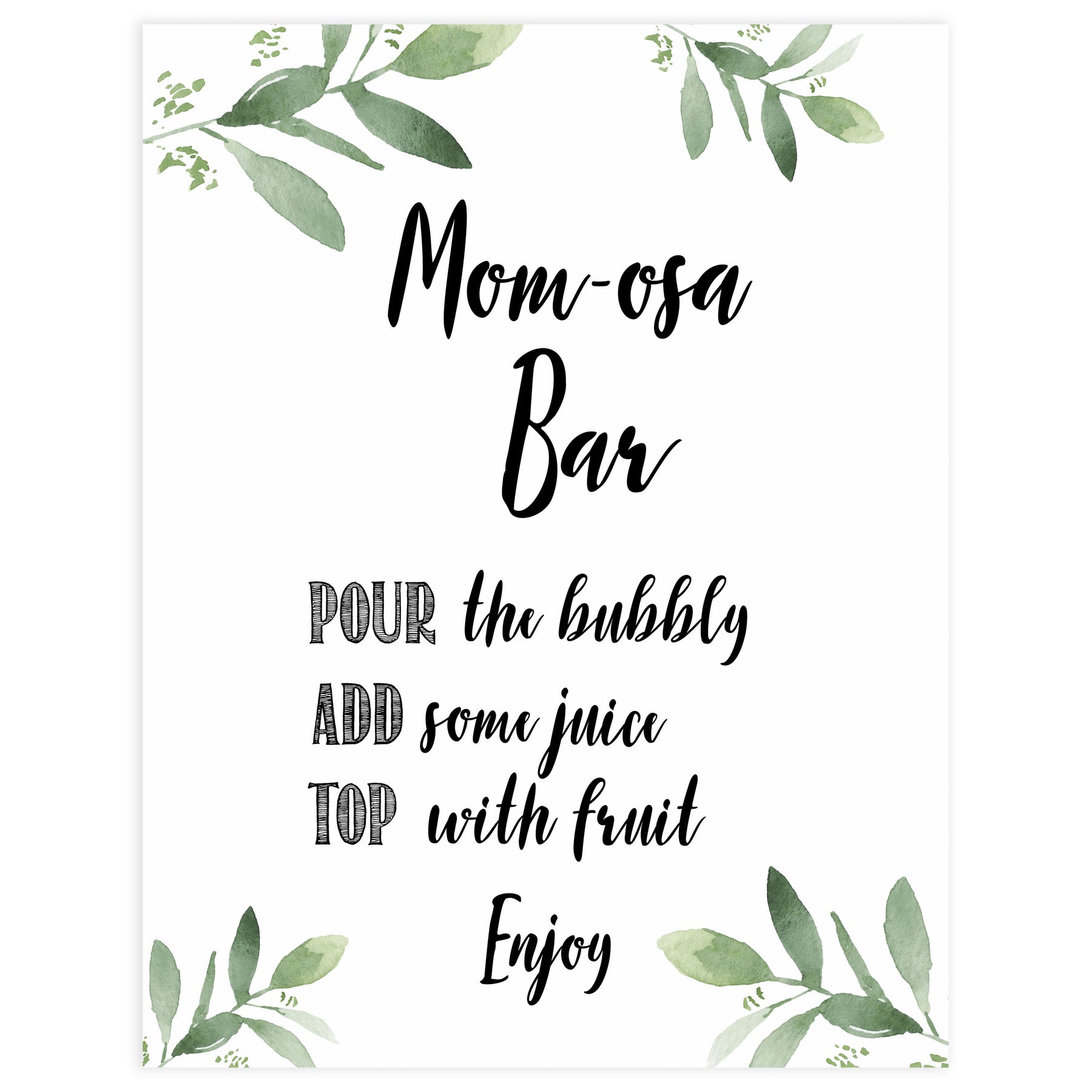 momosa baby shower signs, printable baby shower signs, botanical baby shower decor, floral baby table signs