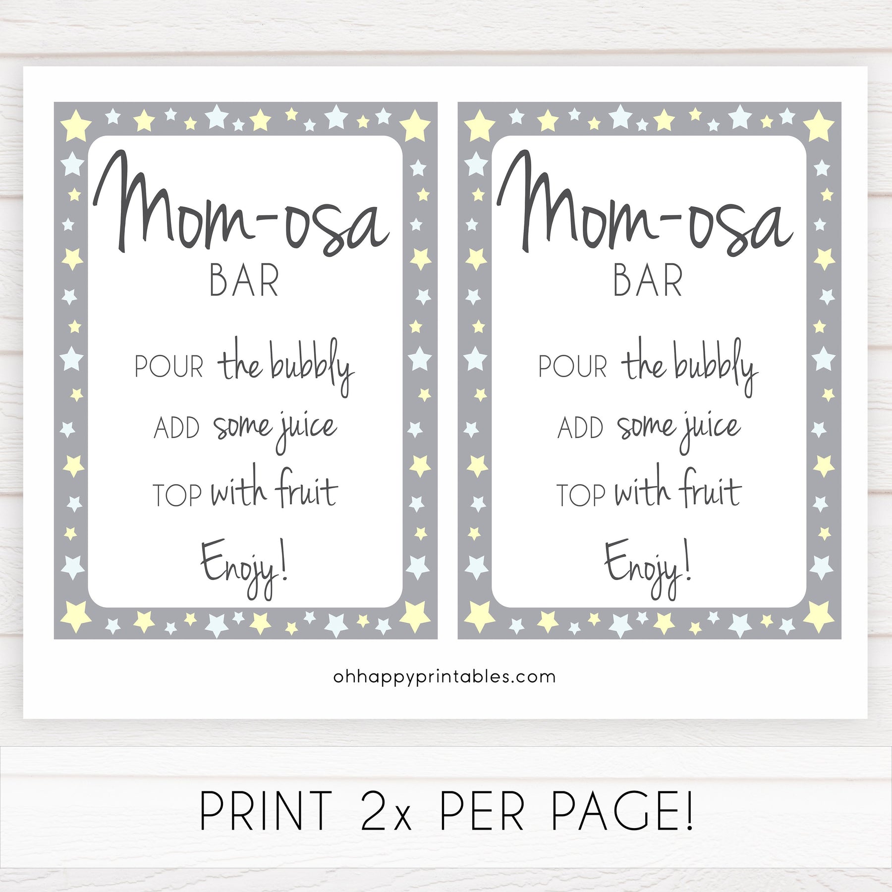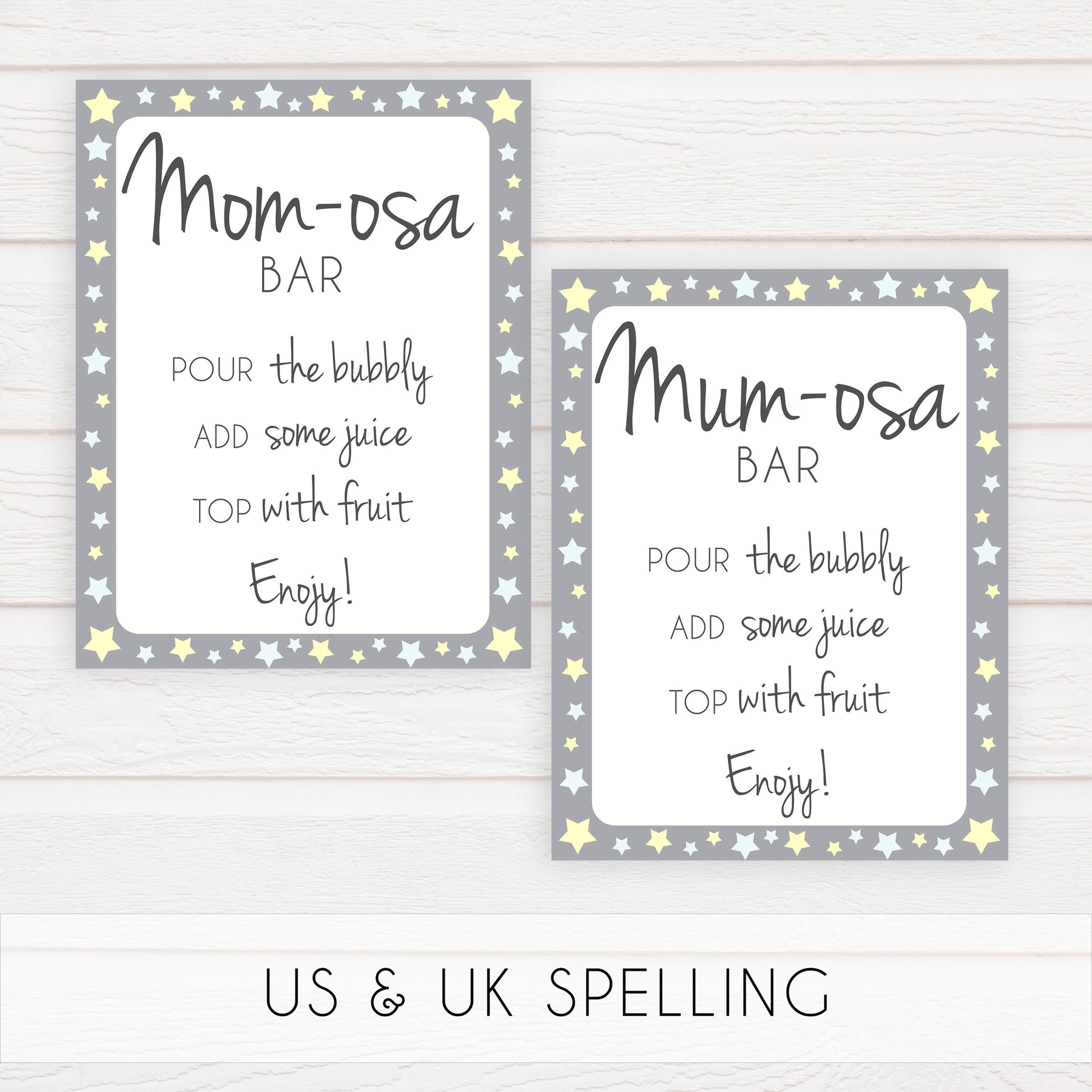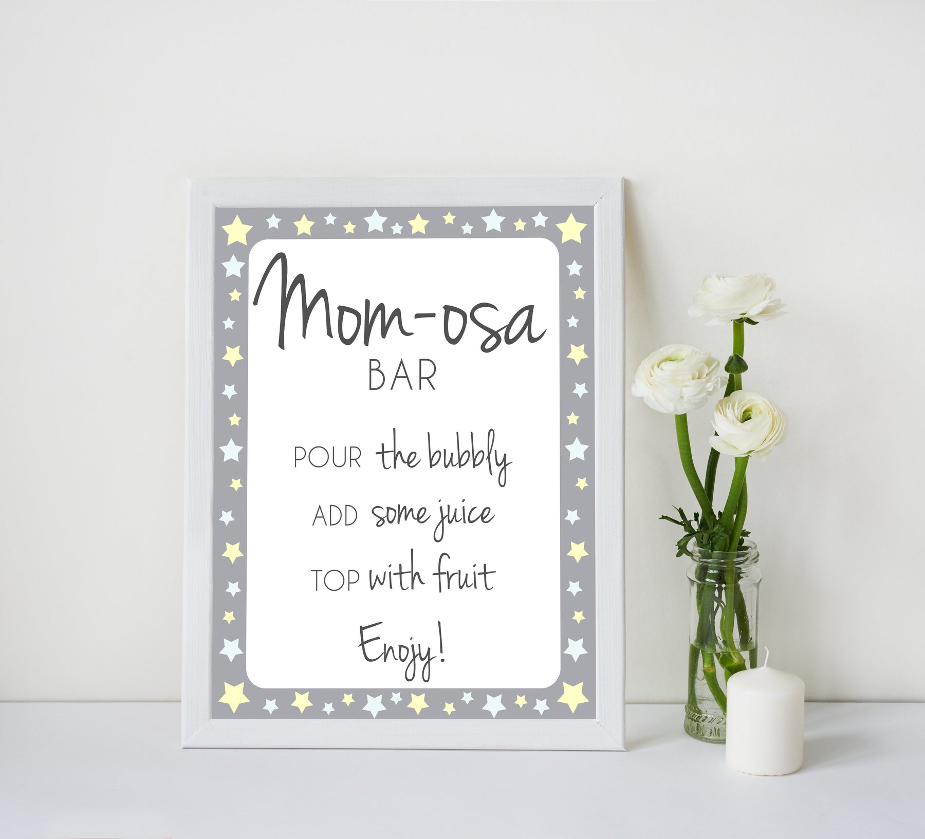Add the finishing touch to your baby shower with this 'Momosa' table sign.