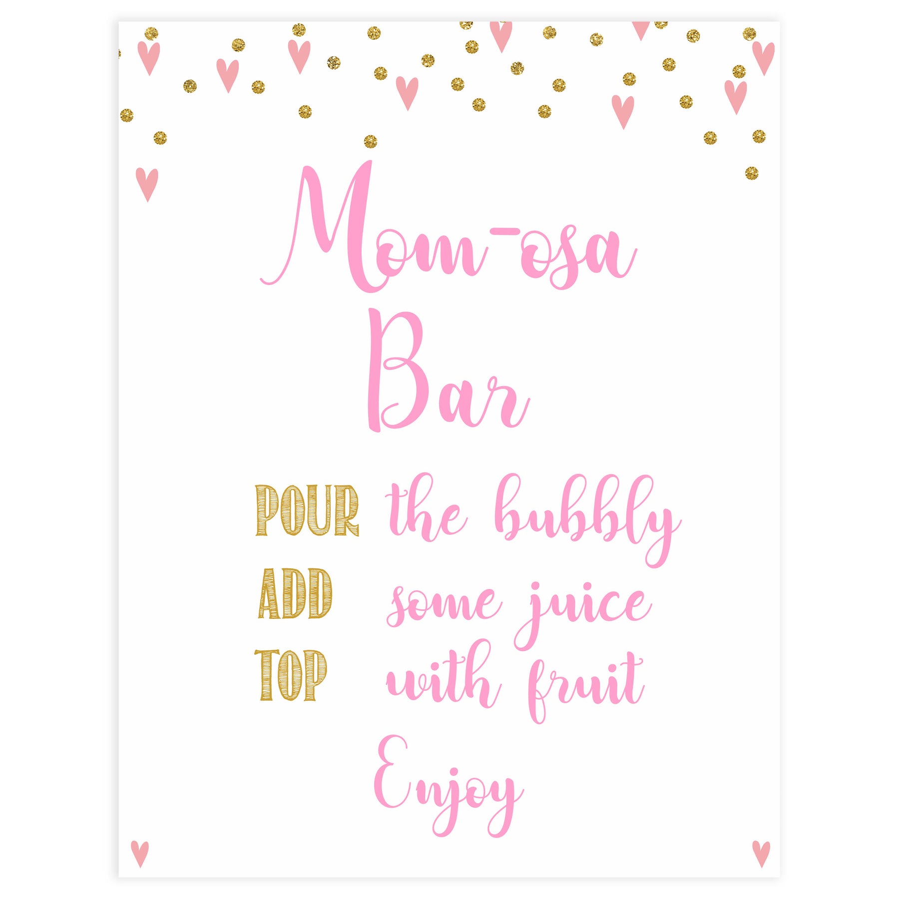 Add the finishing touch to your baby shower with this 'Momosa' table sign.