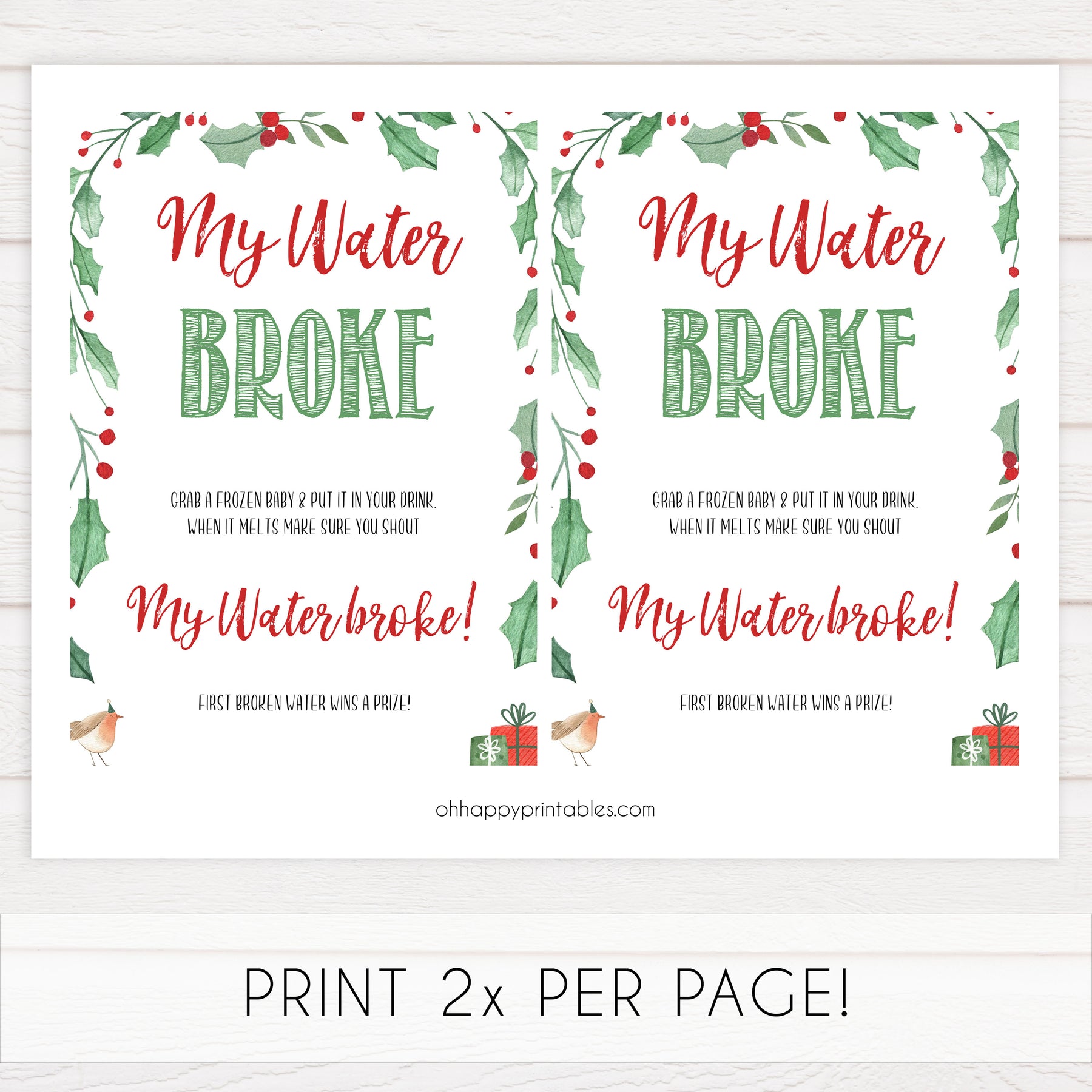 Give each person an ice cube with a plastic baby frozen inside. Your friends keep a watchful eye on their baby to see whose baby will melt out of the ice cube first. Watch your friends find creative ways to be the first to melt the ice. The winner shouts "My Water Broke!”