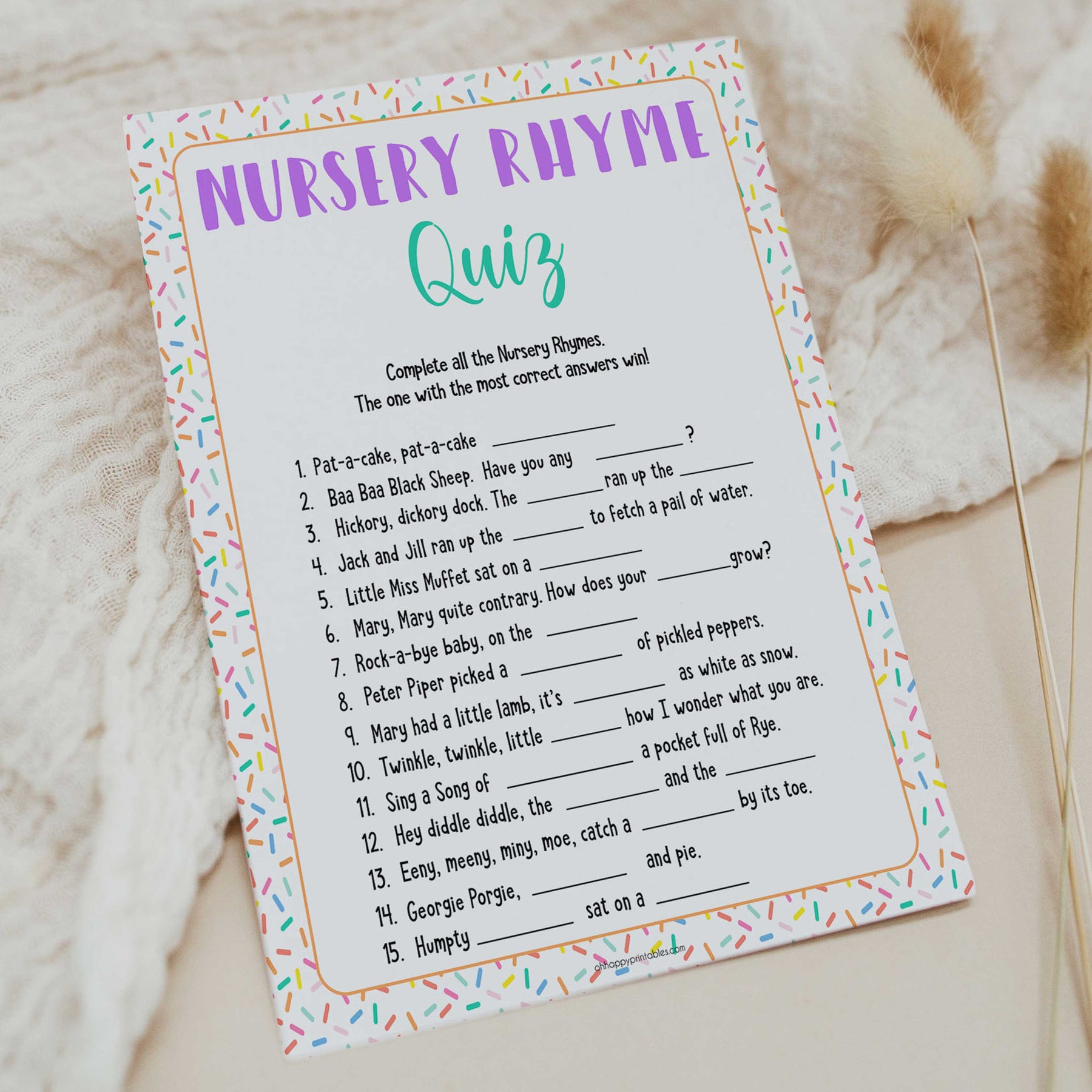 nursery rhyme quiz game, baby nursery rhyme, Printable baby shower games, baby sprinkle fun baby games, baby shower games, fun baby shower ideas, top baby shower ideas, sprinkle shower baby shower, friends baby shower ideas