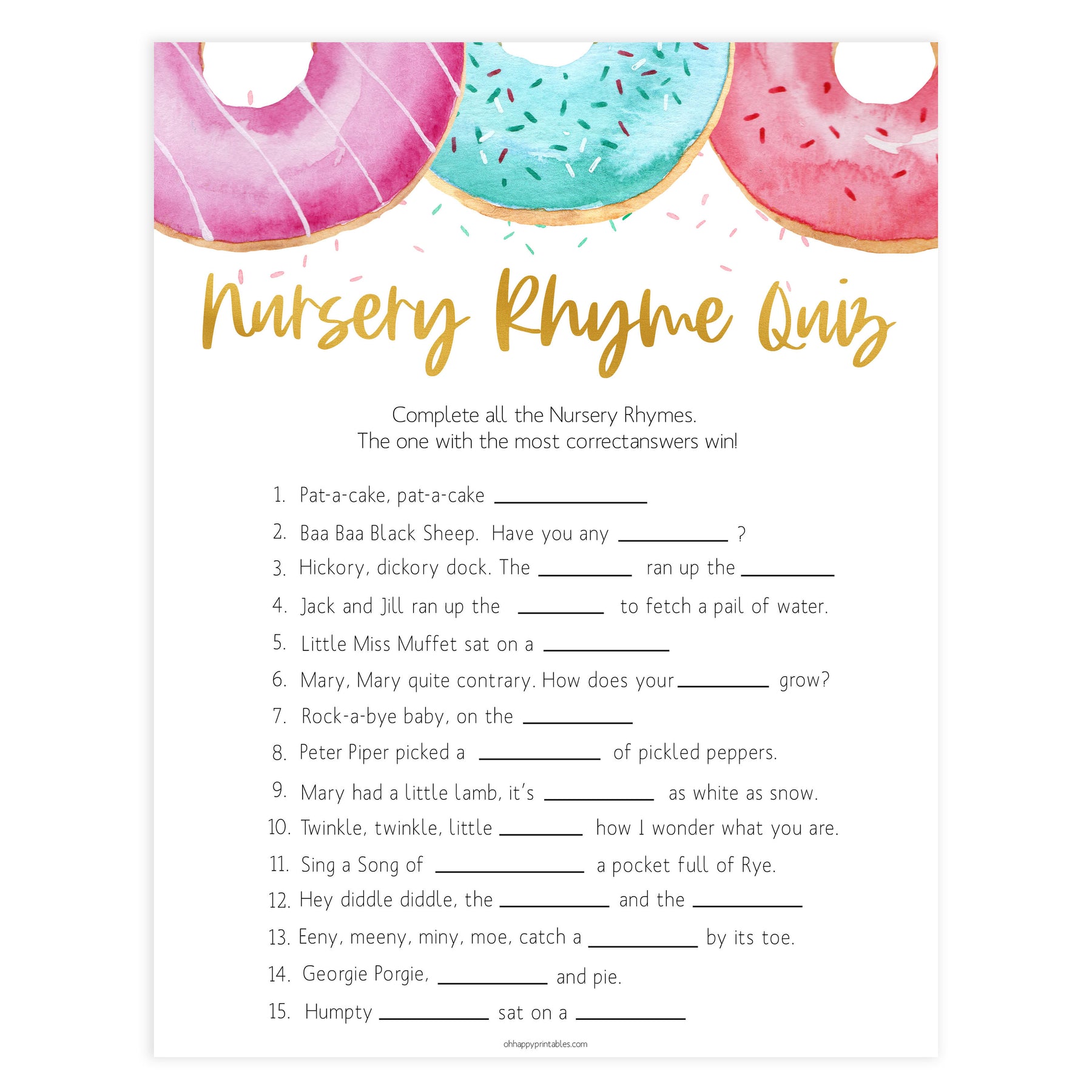 Have your friends fill in the blanks with the nursery rhymes. Just download and print at home. The one with the most right answers win.