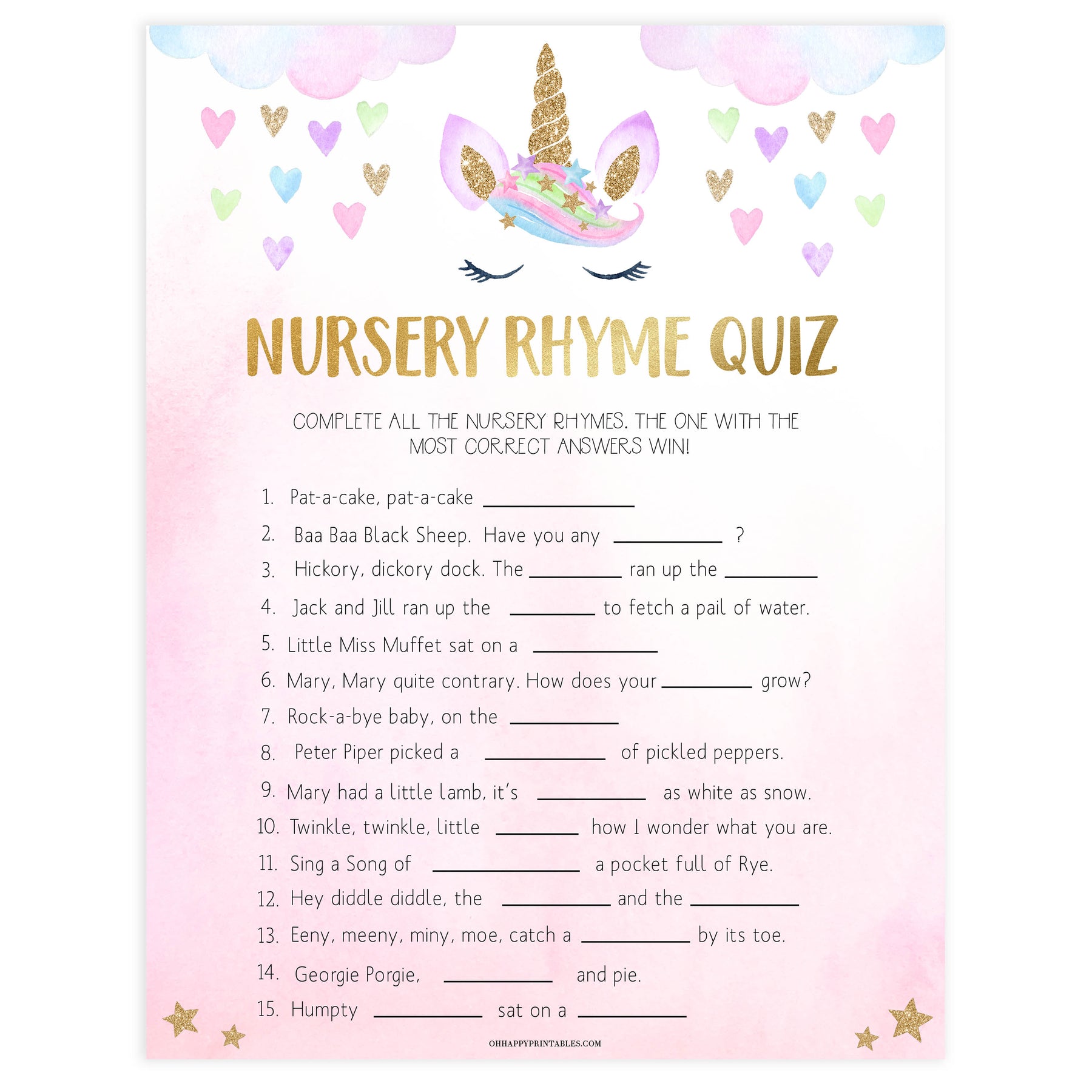 Have your friends fill in the blanks with the nursery rhymes. Just download and print at home. The one with the most right answers win.
