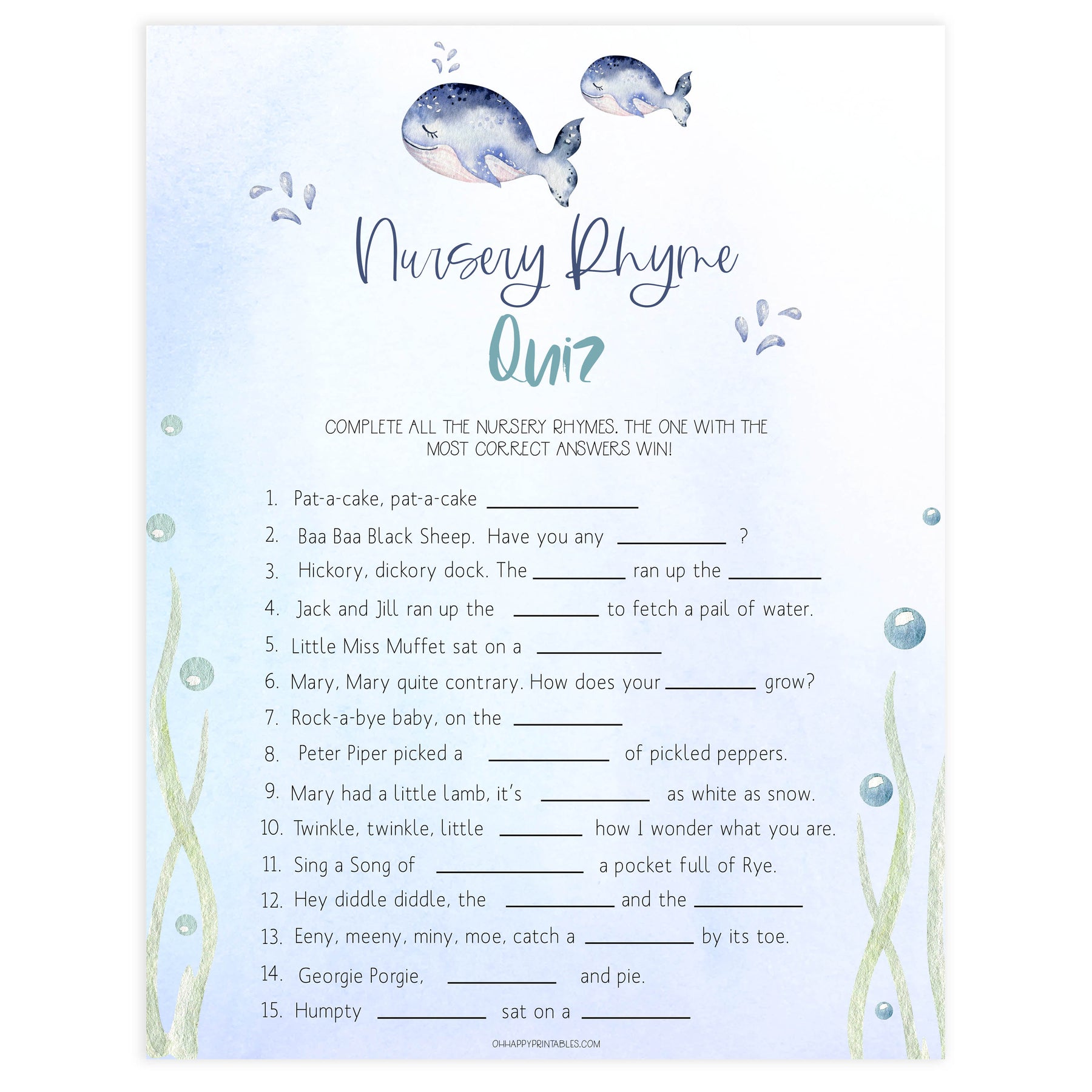 Have your friends fill in the blanks with the nursery rhymes. Just download and print at home. The one with the most right answers win.