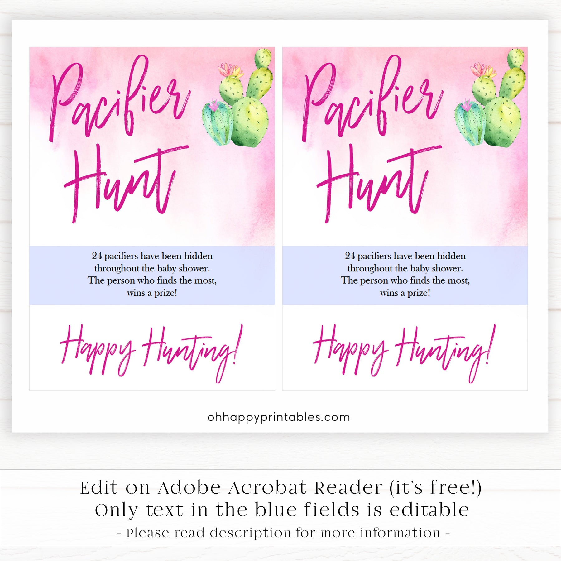 Pacifier Hunt Editable Template - Cactus