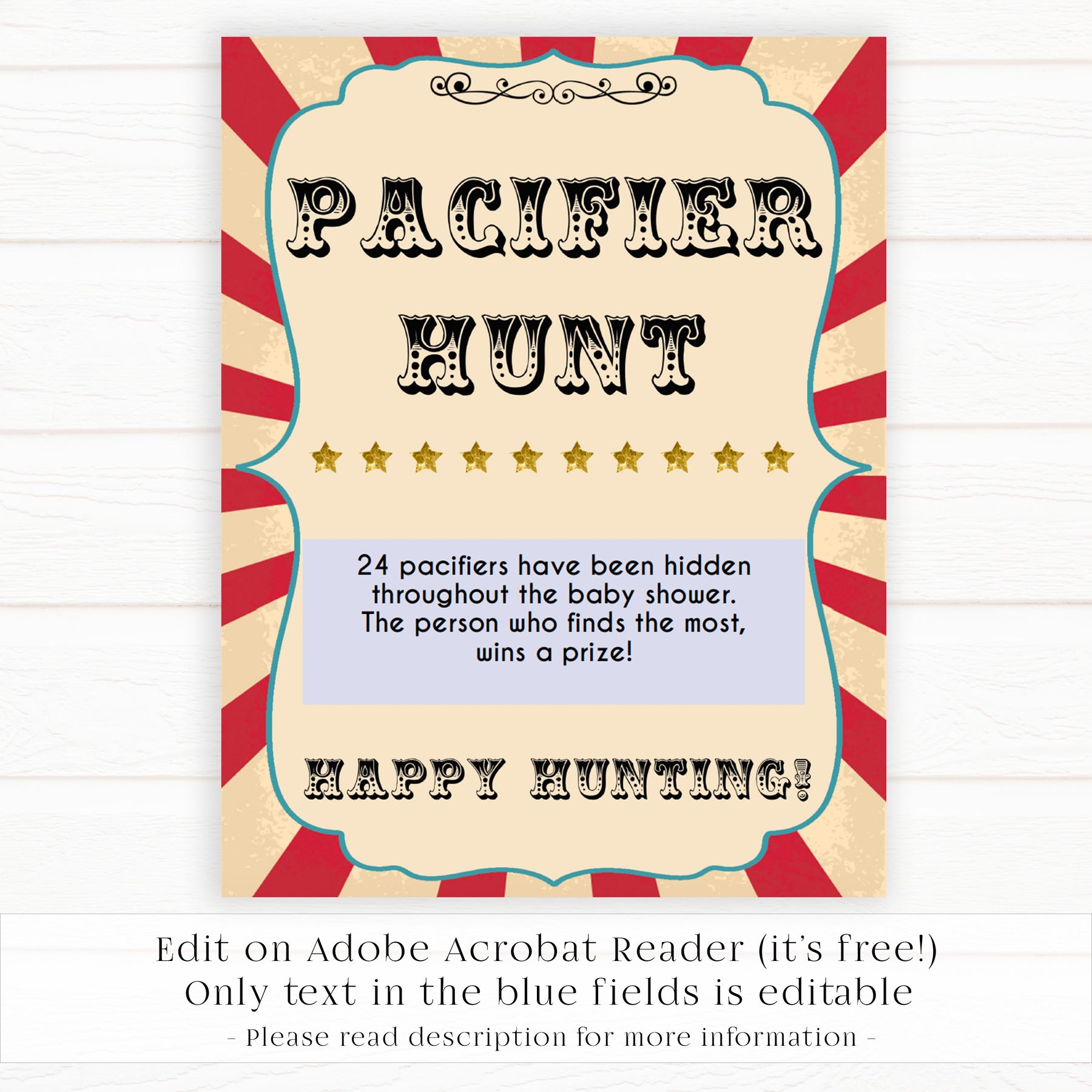 Pacifier Hunt Editable Template - Circus