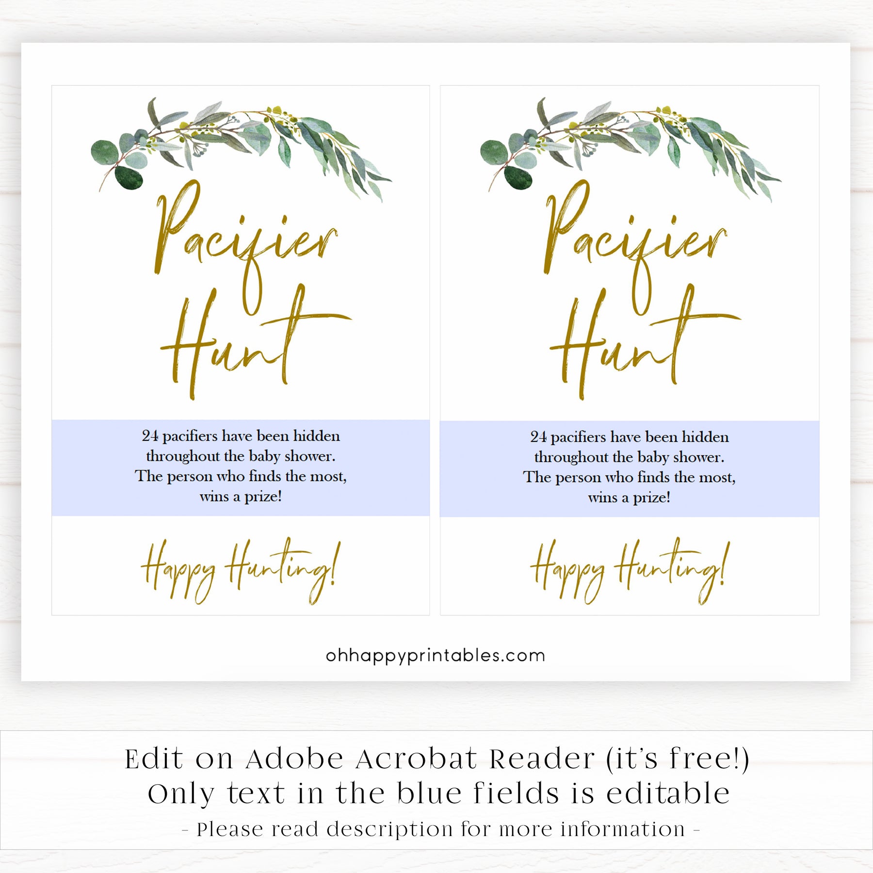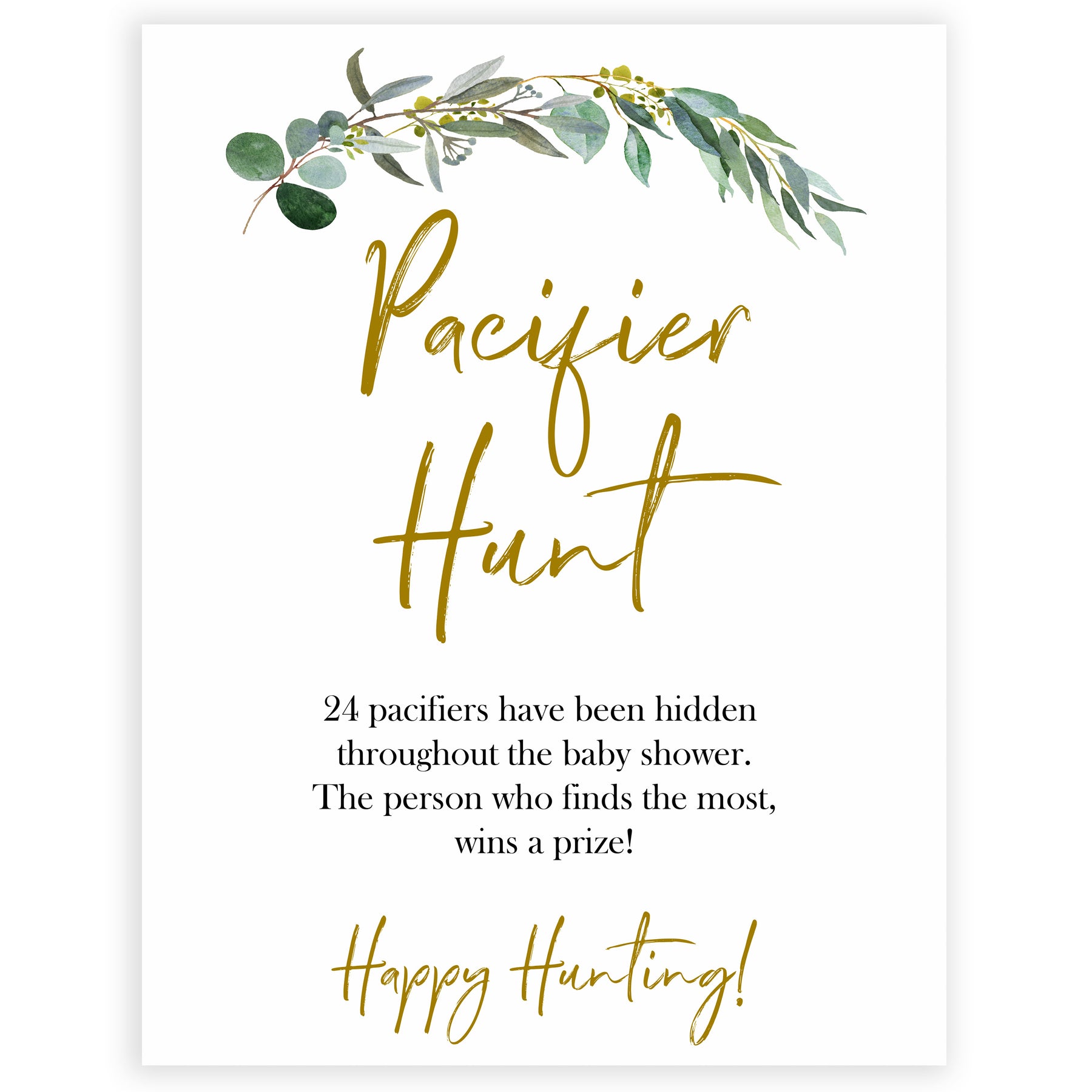 Eucalyptus baby shower games, pacifier hunt baby game, fun baby shower games, printable baby games, baby shower ideas, baby games, baby shower baby shower bundle, baby shower games packs, botanical baby shower