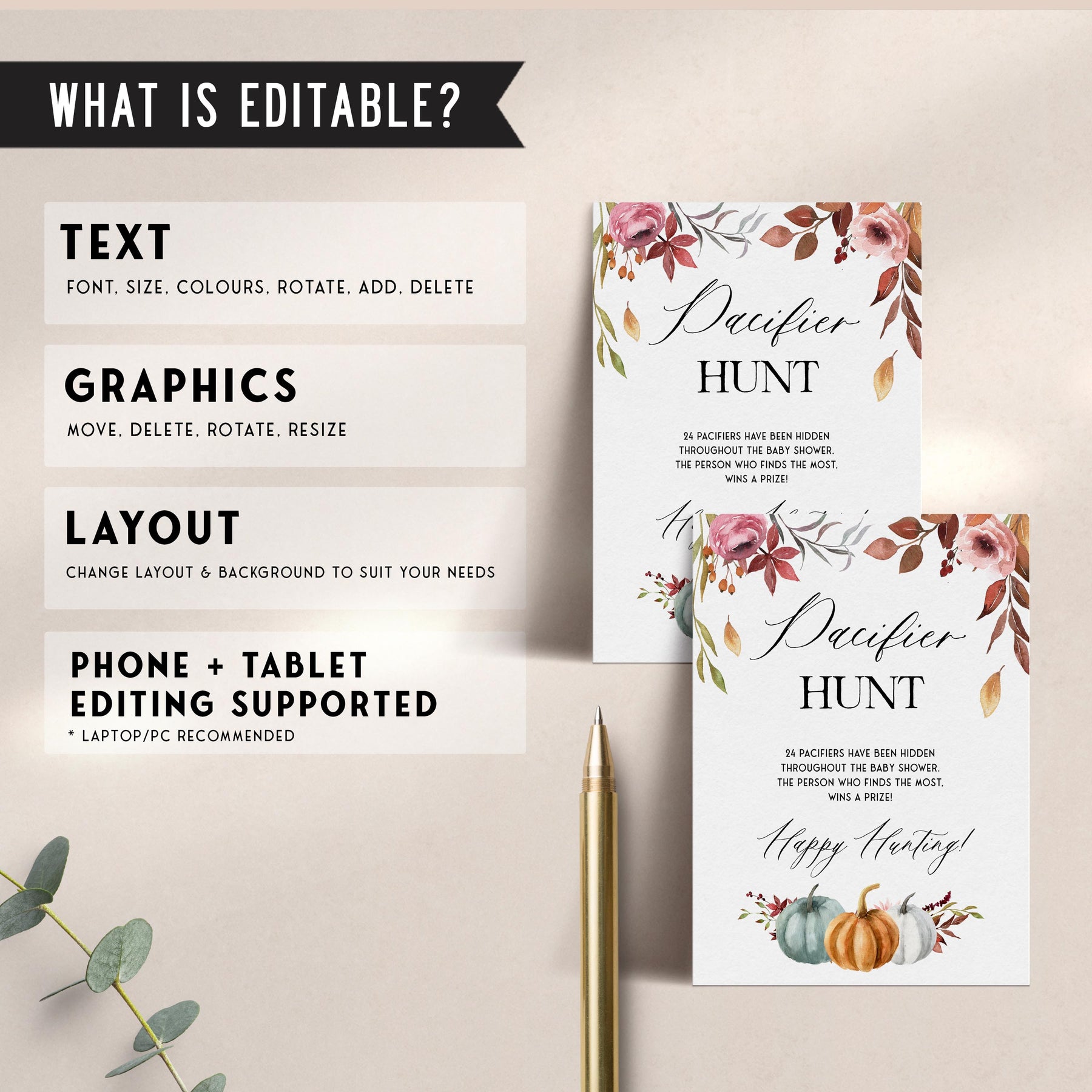 Pacifier Hunt Editable Template - Fall Pumpkin