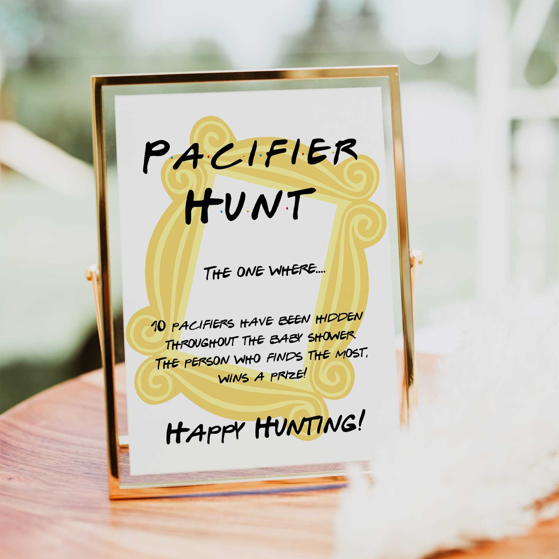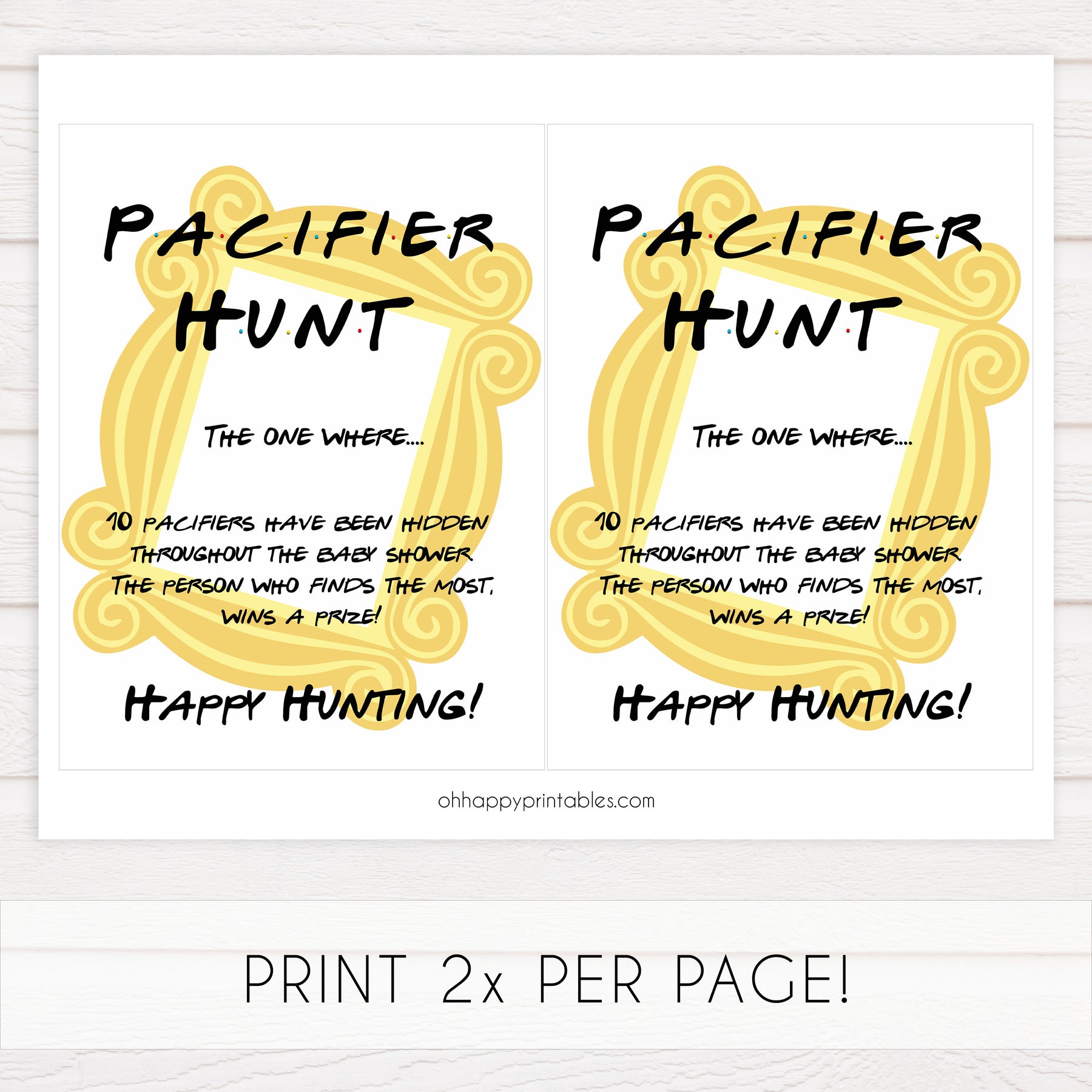 The Pacifier Hunt is a great baby shower game that gets everyone out of their seat and having fun. A twist on the traditional treasure hunt, friends and family have to find the pacifiers that you've hidden around your baby shower party. You can give prizes to winners. Get hunting!