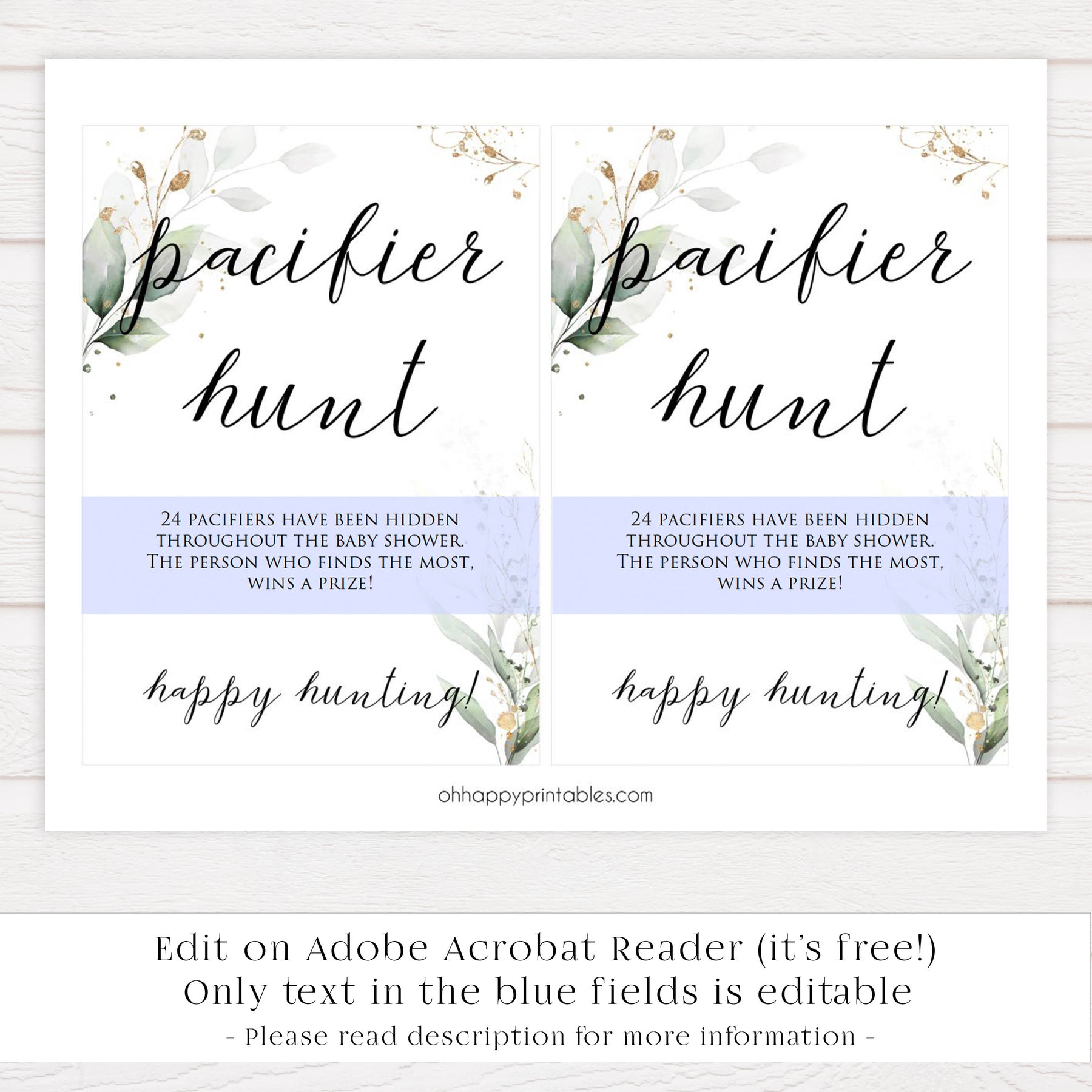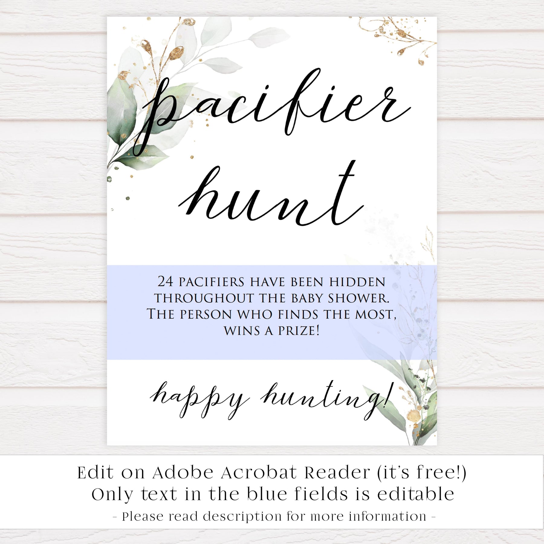 Pacifier Hunt Editable Template - Gold & Green Leaf
