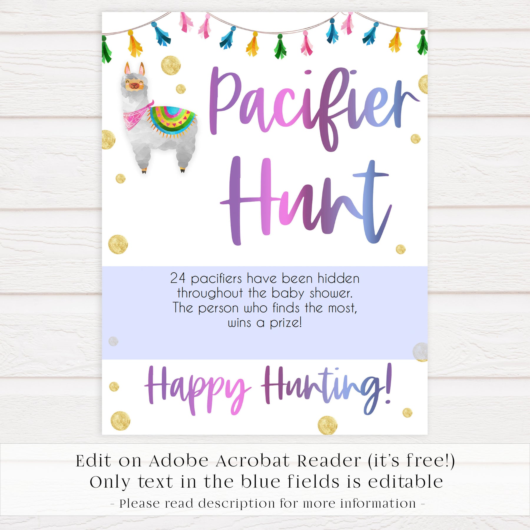 Pacifier Hunt Editable Template - Llama Fiesta
