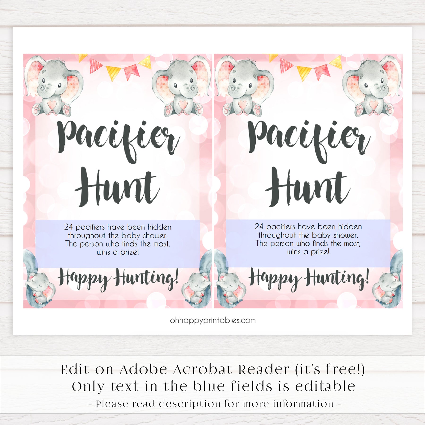 The Pacifier Hunt is a great baby shower game that gets everyone out of their seat and having fun. A twist on the traditional treasure hunt, friends and family have to find the pacifiers that you've hidden around your baby shower party. You can give prizes to winners. Get hunting!