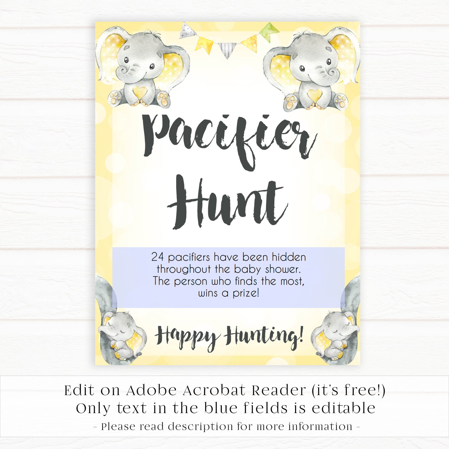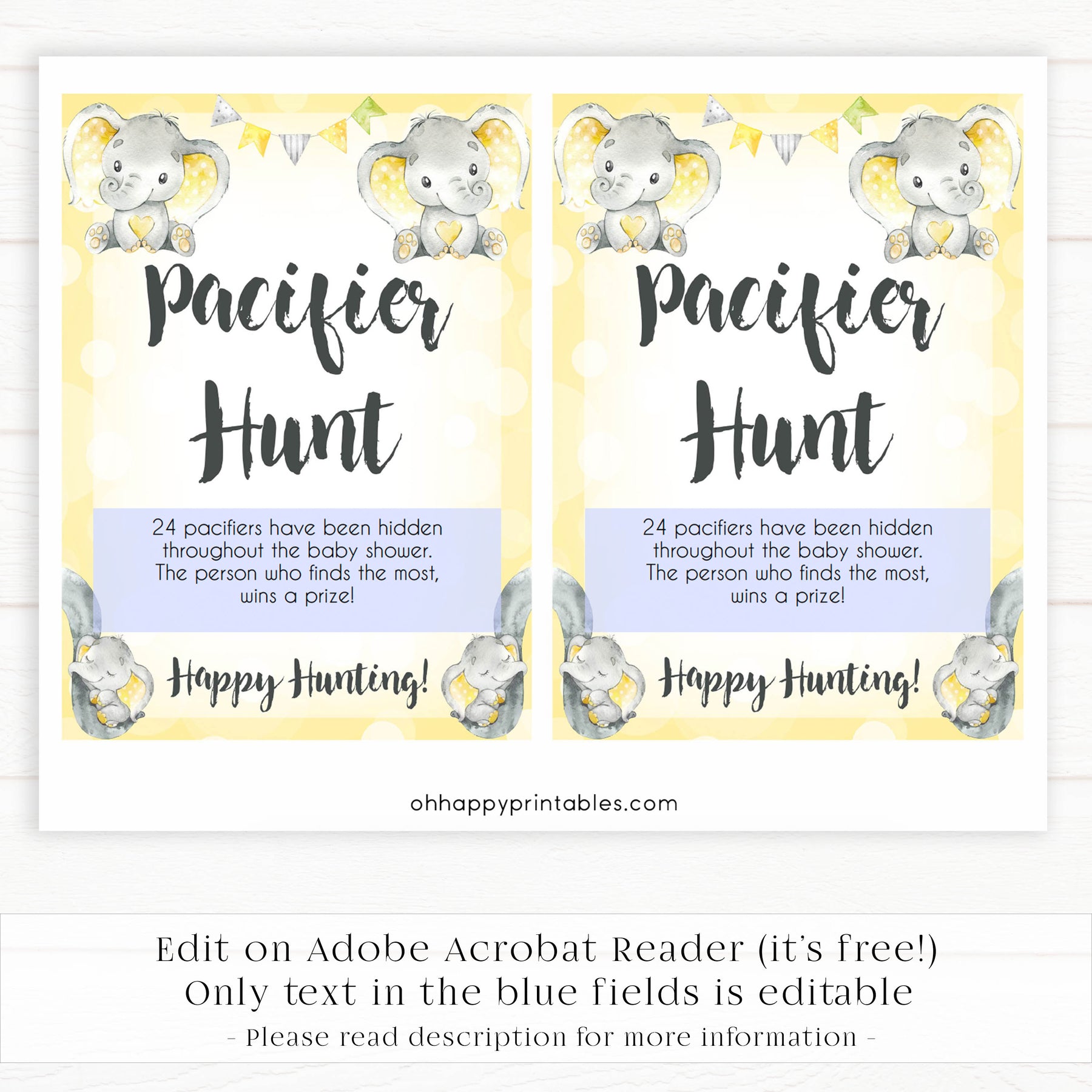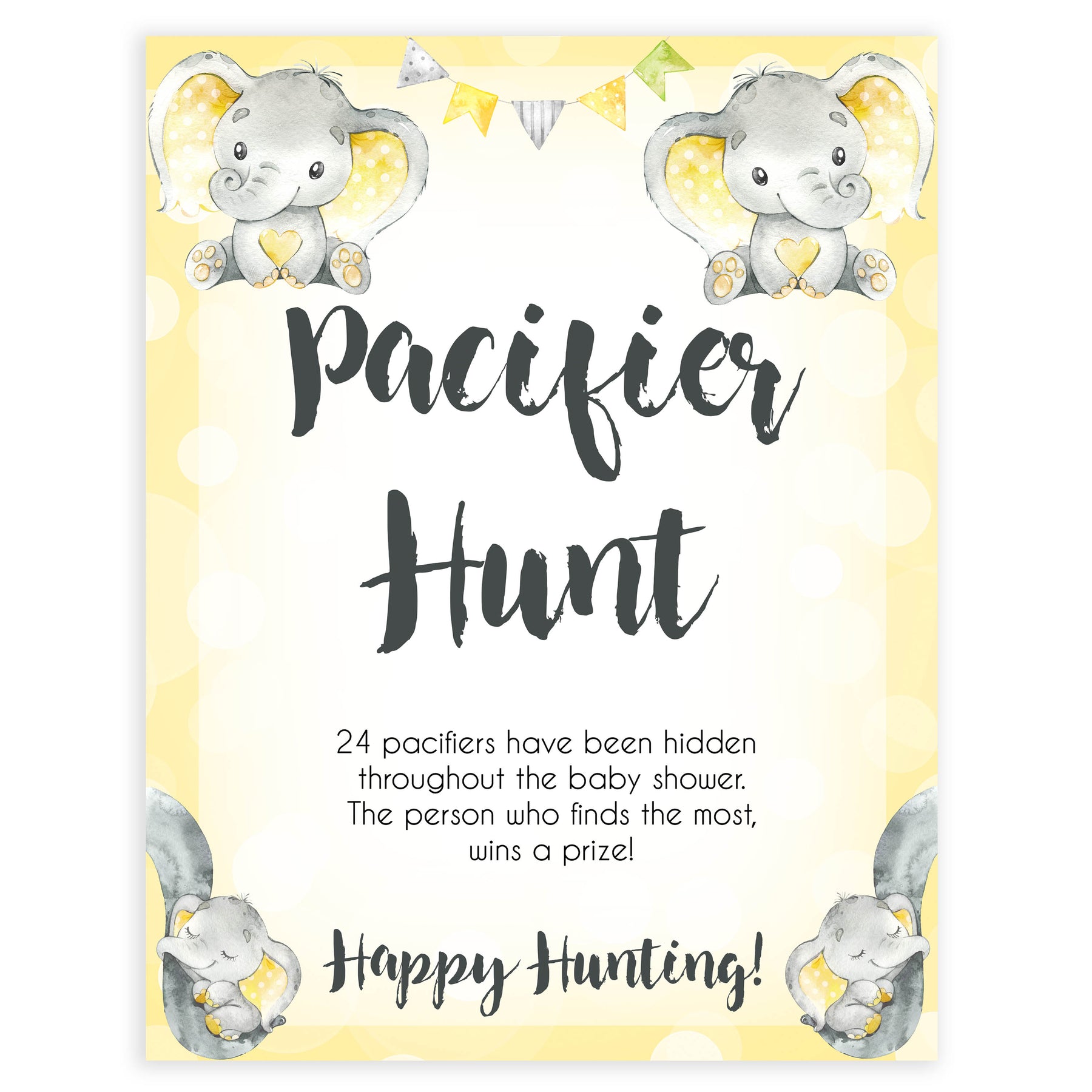 The Pacifier Hunt is a great baby shower game that gets everyone out of their seat and having fun. A twist on the traditional treasure hunt, friends and family have to find the pacifiers that you've hidden around your baby shower party. You can give prizes to winners. Get hunting!