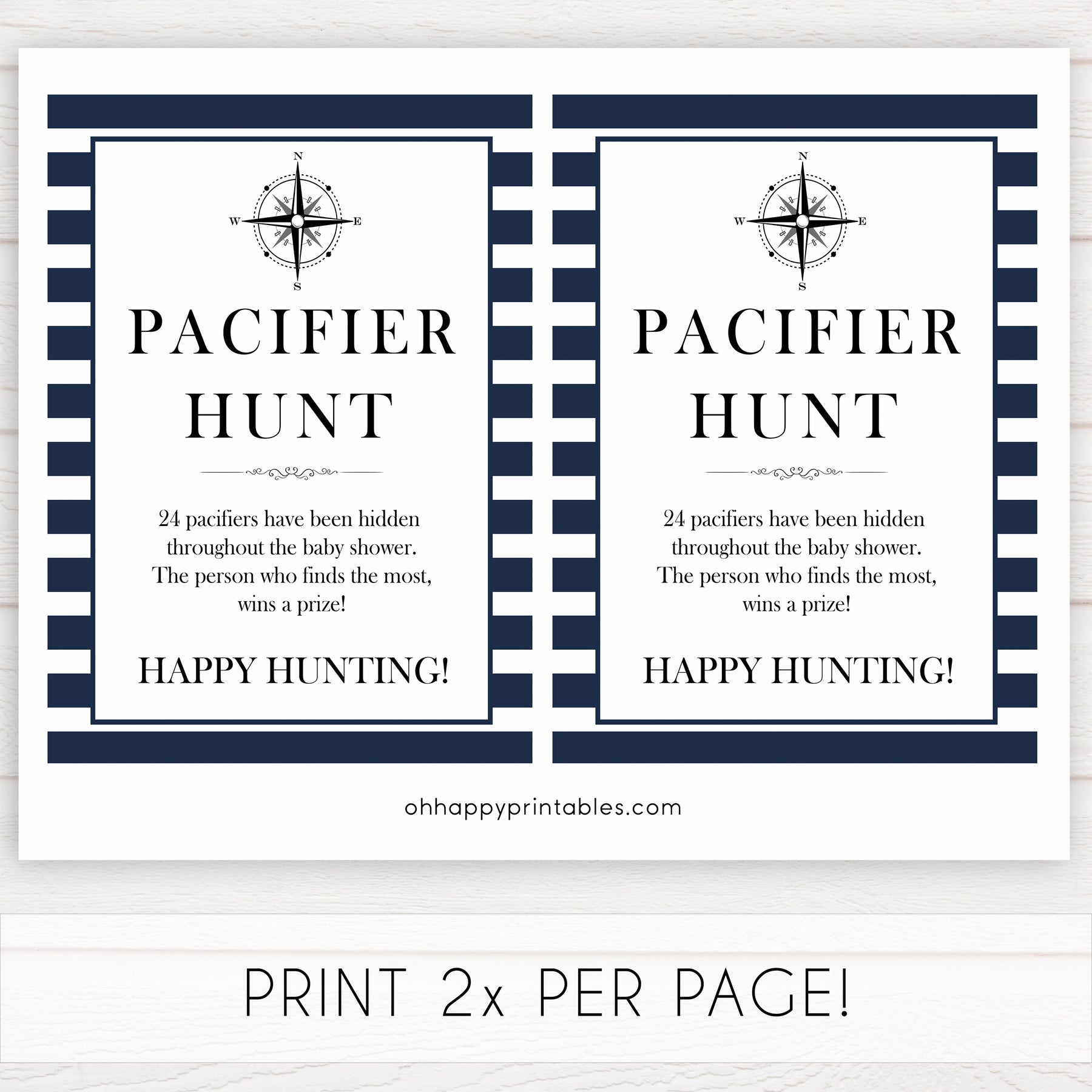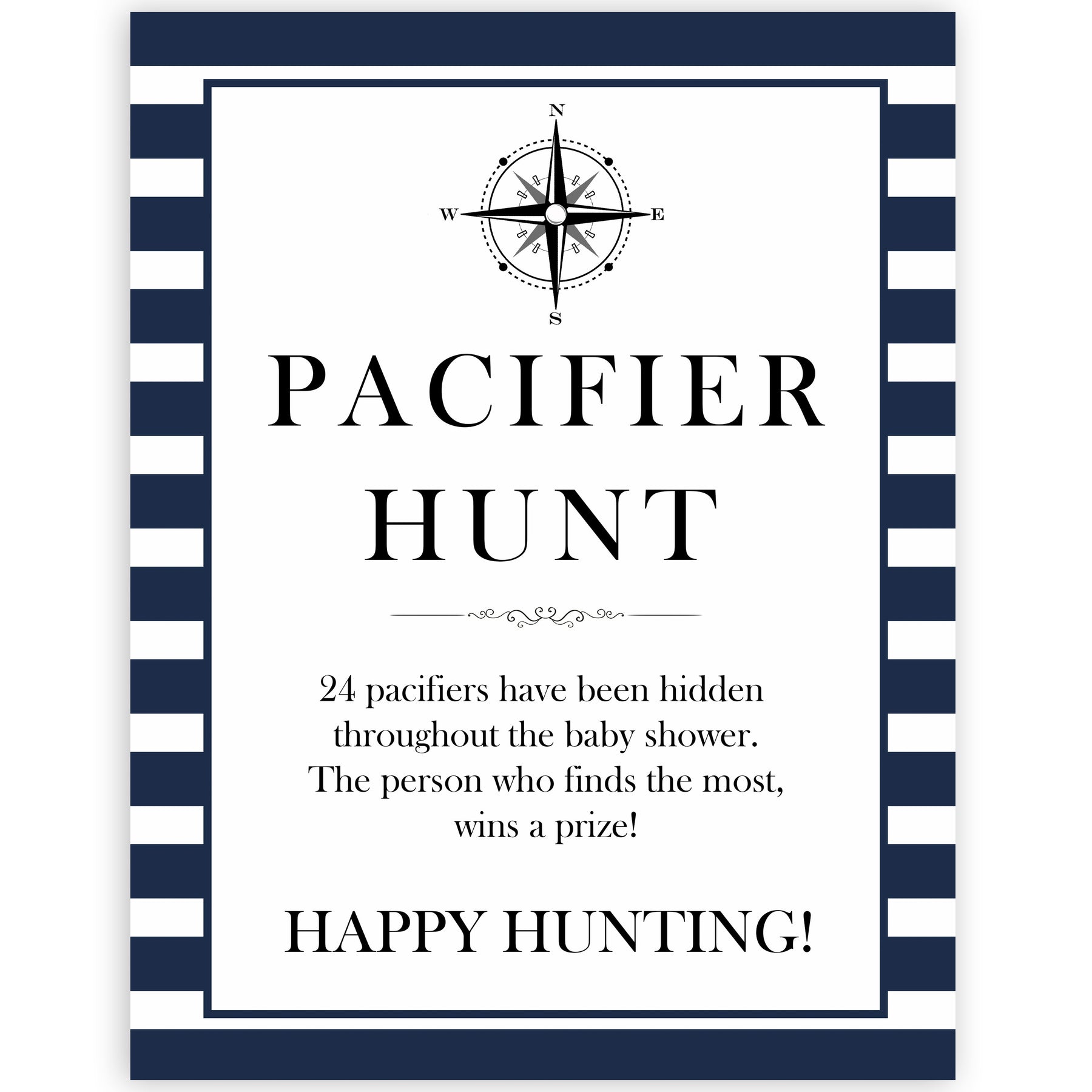 The Pacifier Hunt is a great baby shower game that gets everyone out of their seat and having fun. A twist on the traditional treasure hunt, friends and family have to find the pacifiers that you've hidden around your baby shower party. You can give prizes to winners. Get hunting!