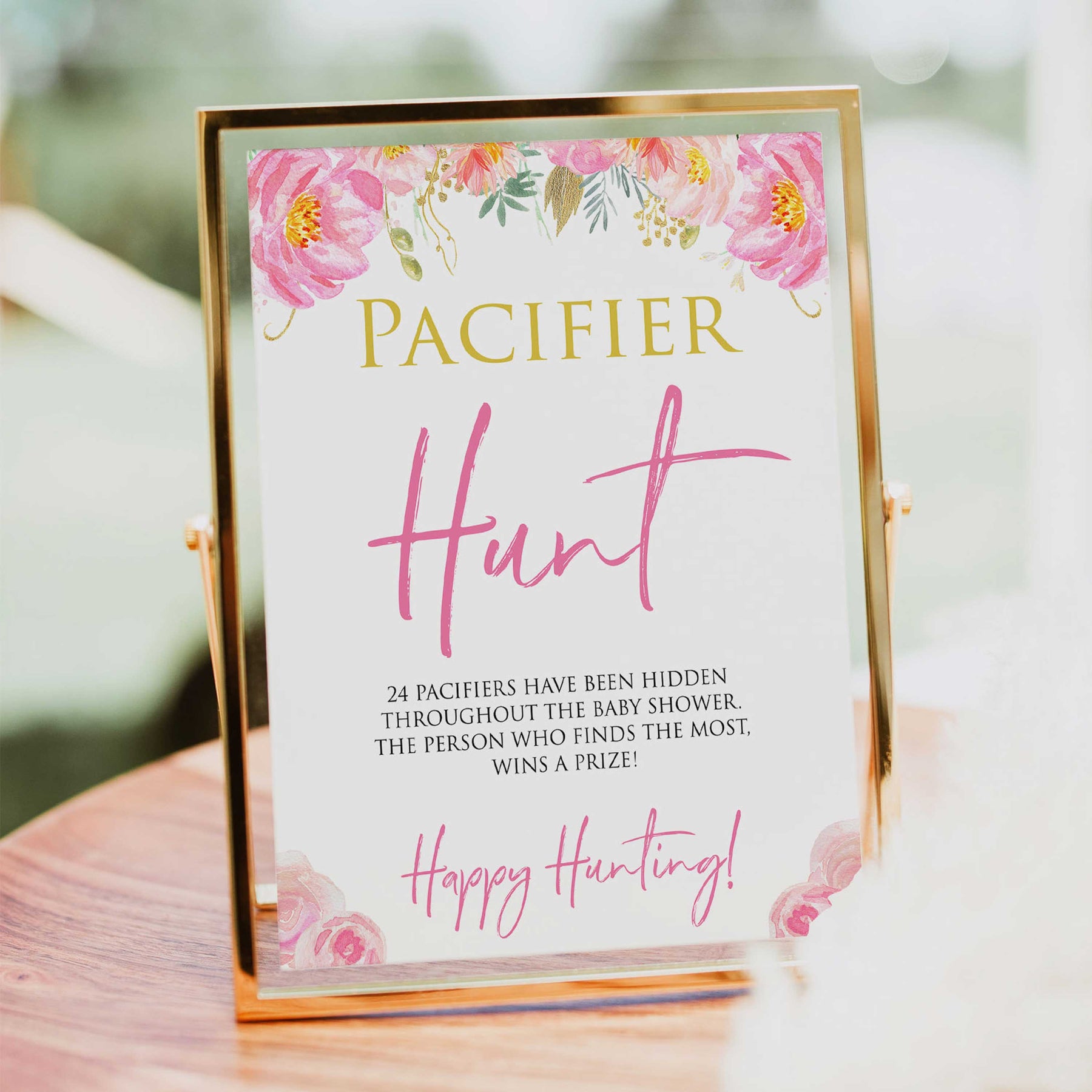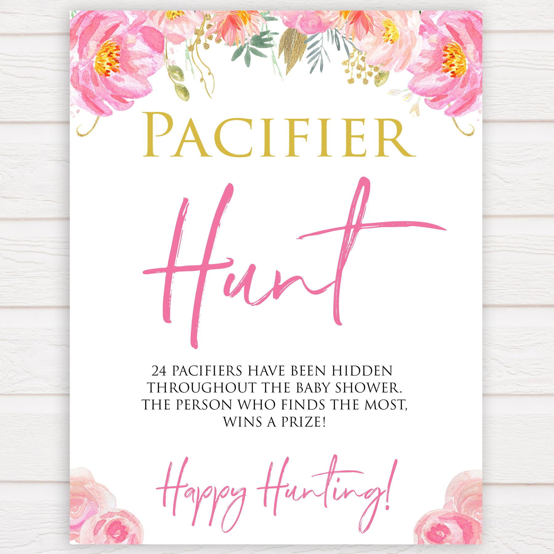 The Pacifier Hunt is a great baby shower game that gets everyone out of their seat and having fun. A twist on the traditional treasure hunt, friends and family have to find the pacifiers that you've hidden around your baby shower party. You can give prizes to winners. Get hunting!
