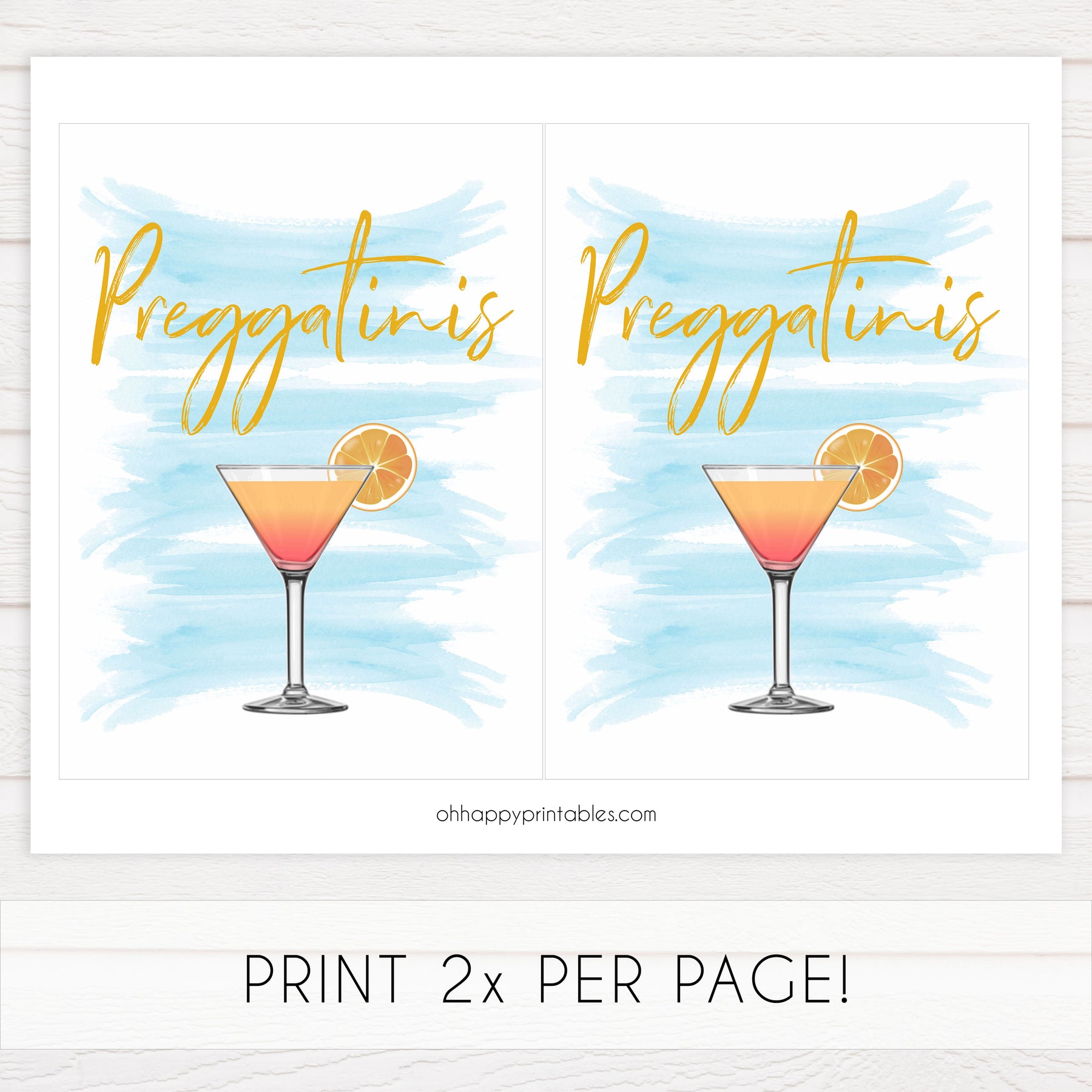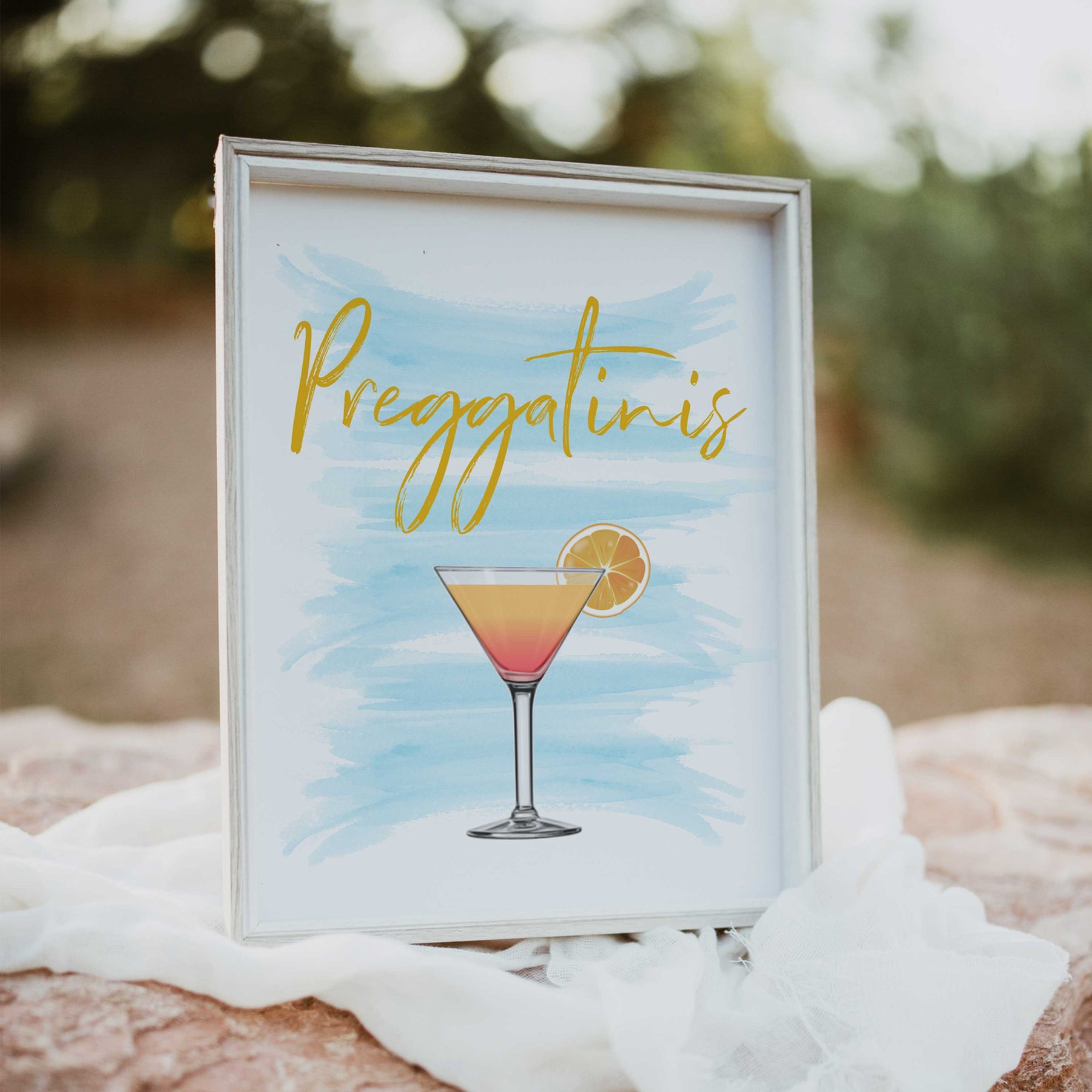 Add the finishing touch to your baby shower with this 'Preggatinis' table sign.