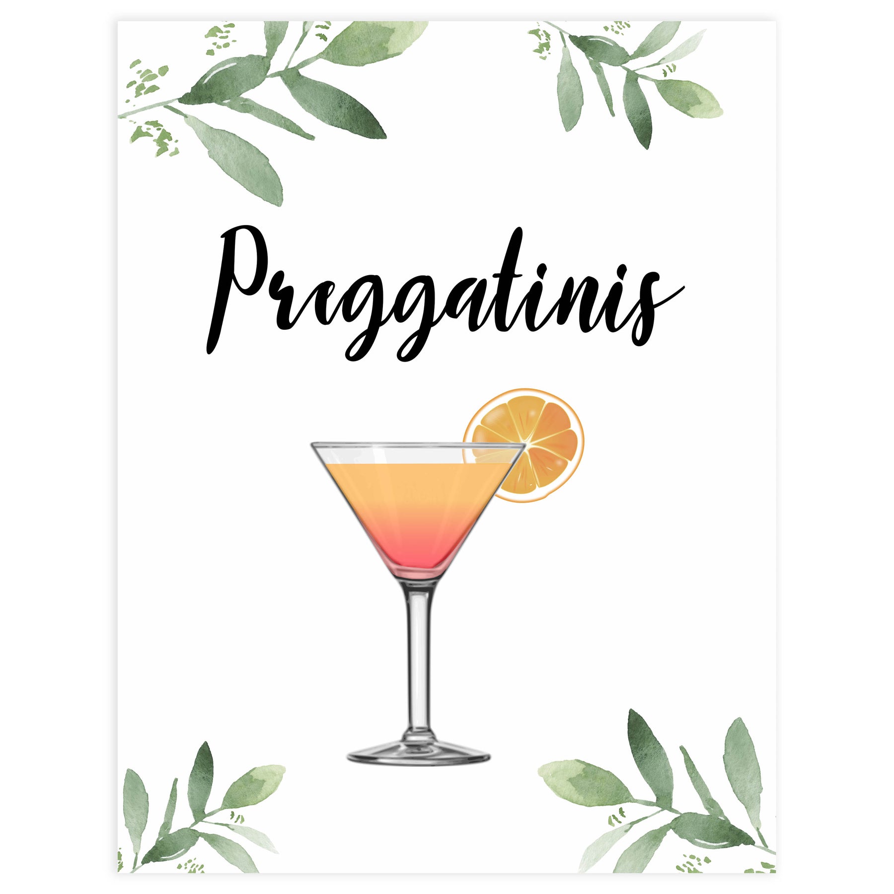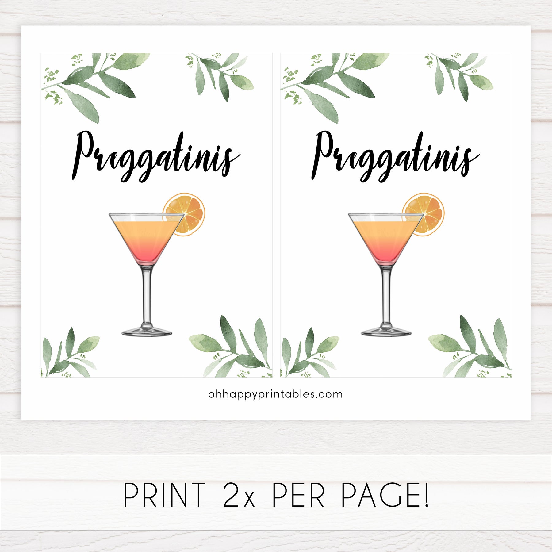 preggatinis baby shower signs, printable baby shower signs, botanical baby shower decor, floral baby table signs