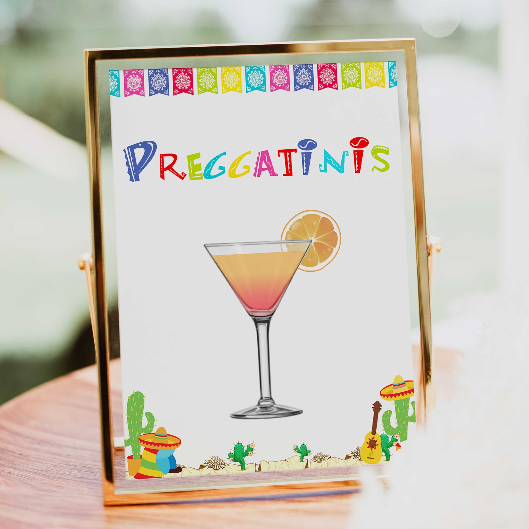 Add the finishing touch to your baby shower with this 'Preggatinis' table sign.
