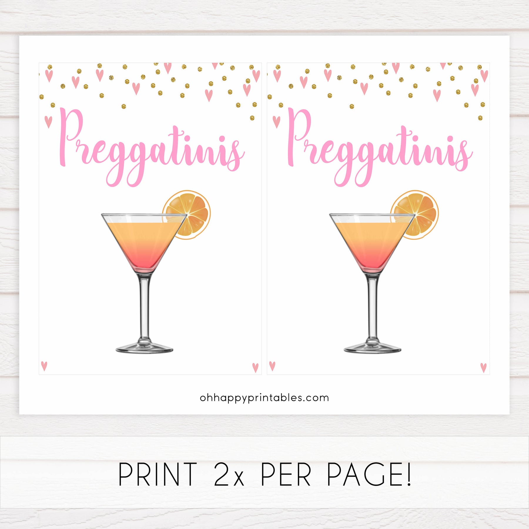 Add the finishing touch to your baby shower with this 'Preggatinis' table sign.
