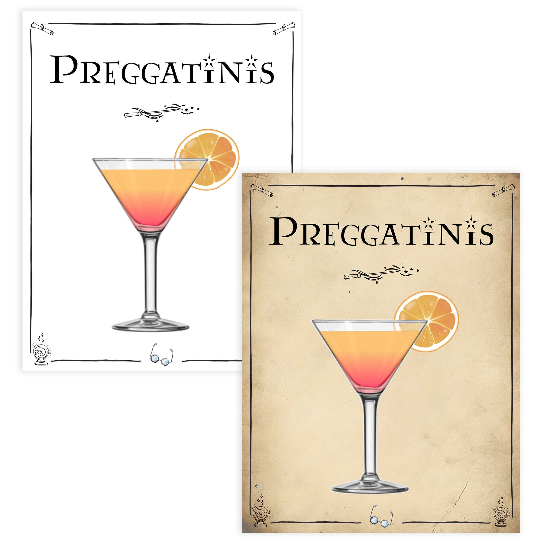Preggatinis Sign, Wizard baby shower signs, printable baby shower decor, Harry Potter baby decor, Harry Potter baby shower ideas, fun baby decor, fun baby signs