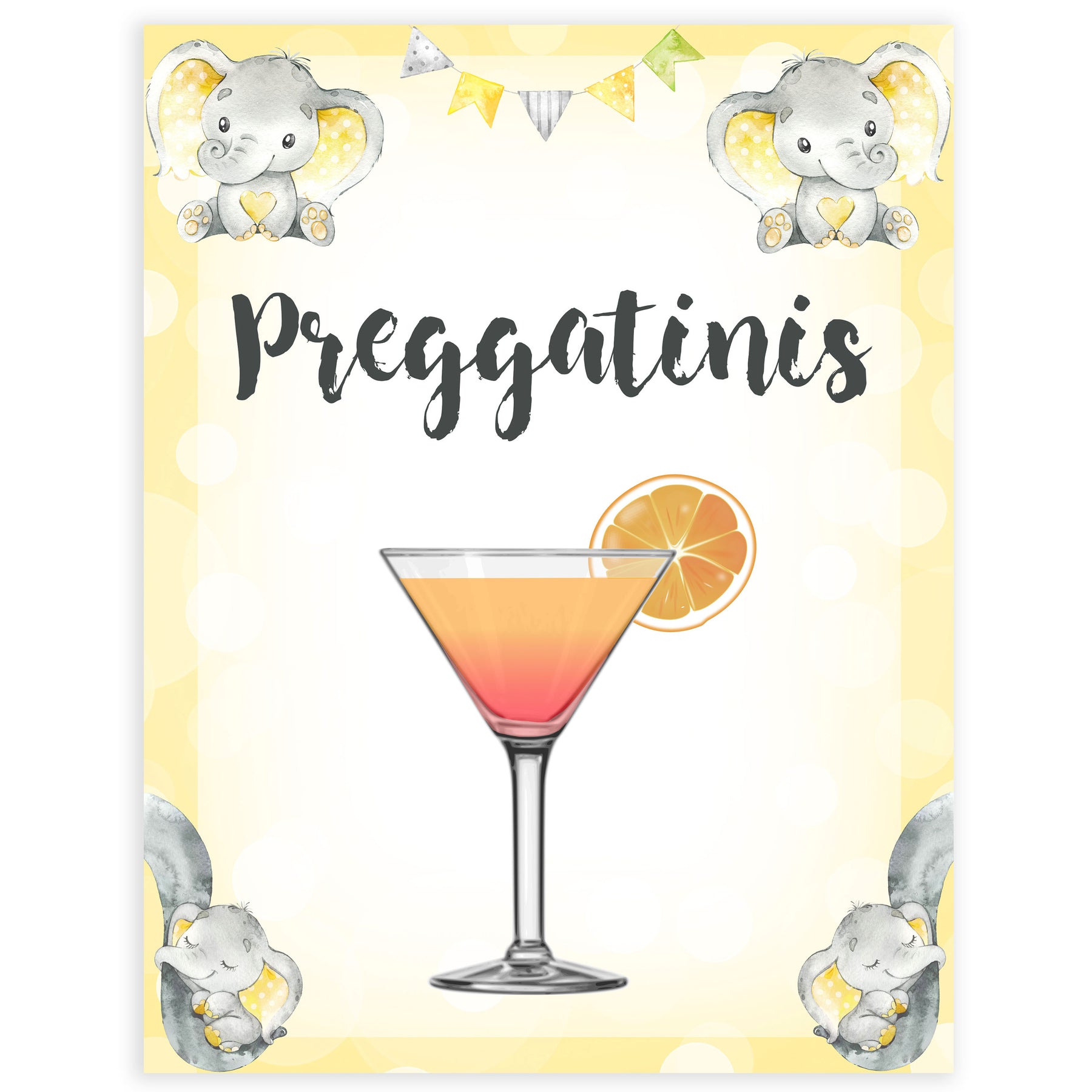 Yellow elephants, neutral baby shower signs, preggatinis baby signs, baby shower signs, baby shower decor, gender reveal ideas, top baby shower ideas, printable baby signs
