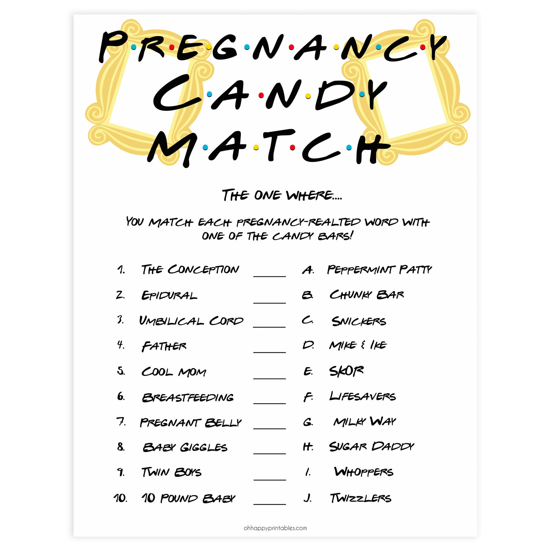 pregnancy candy match, Printable baby shower games, friends fun baby games, baby shower games, fun baby shower ideas, top baby shower ideas, friends baby shower, friends baby shower ideas
