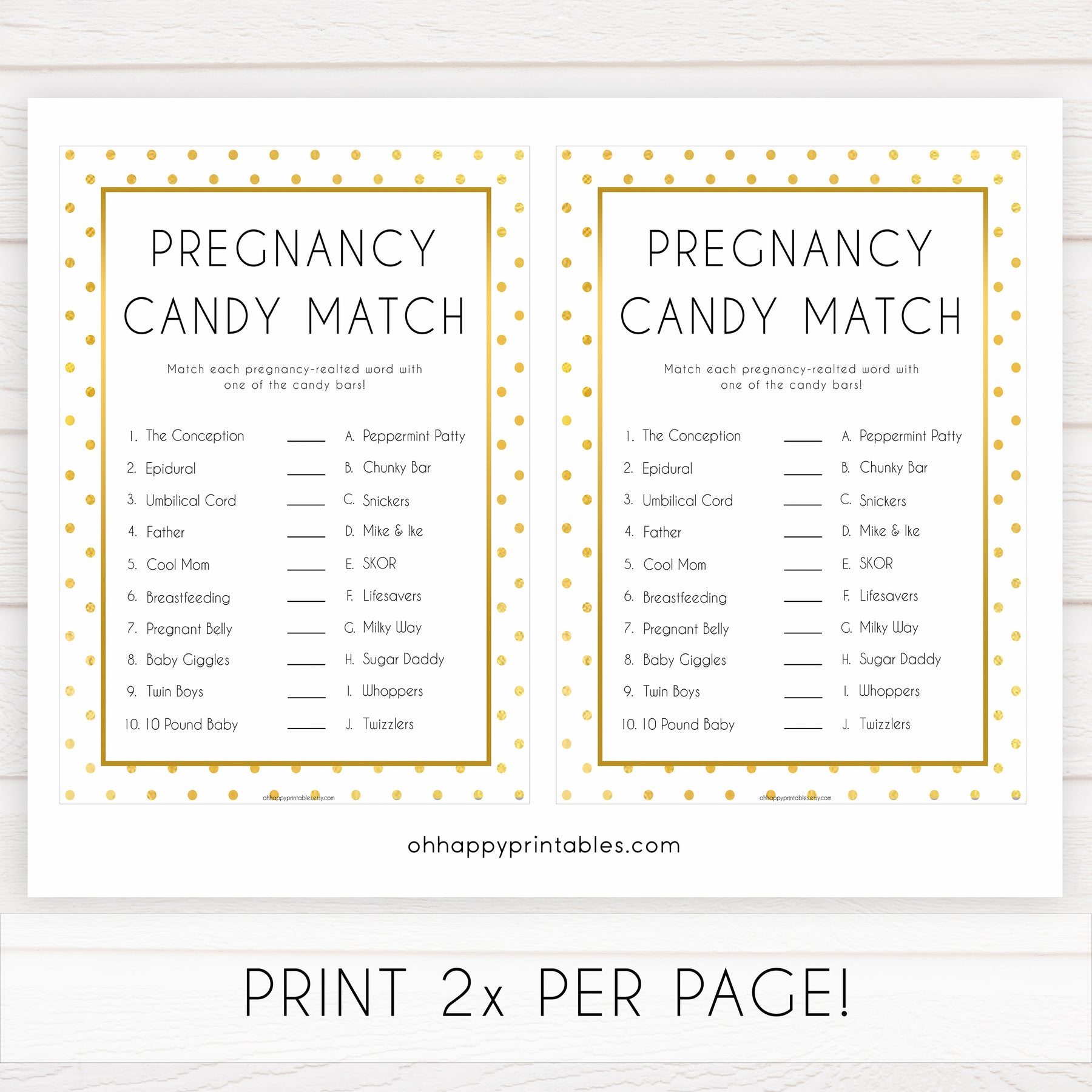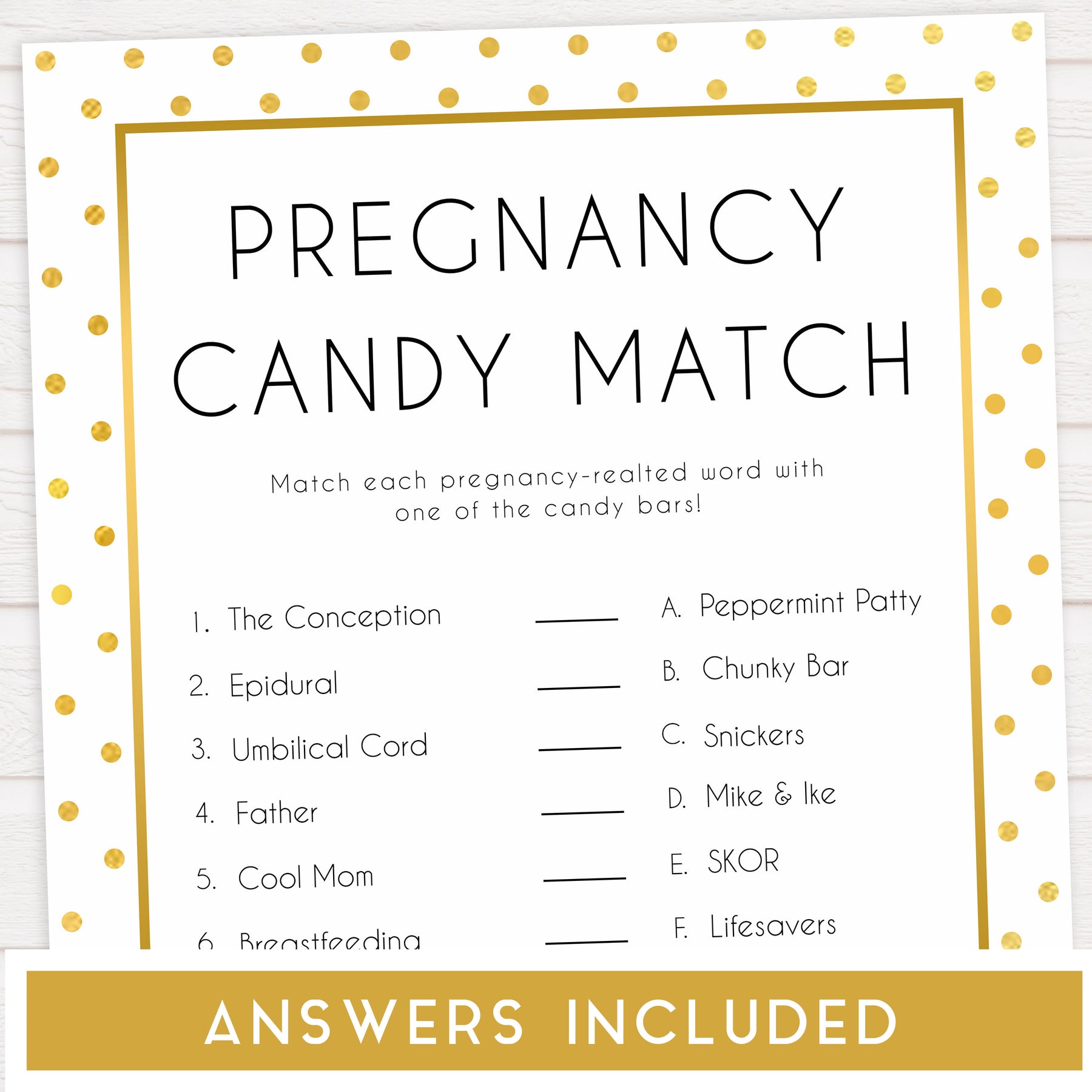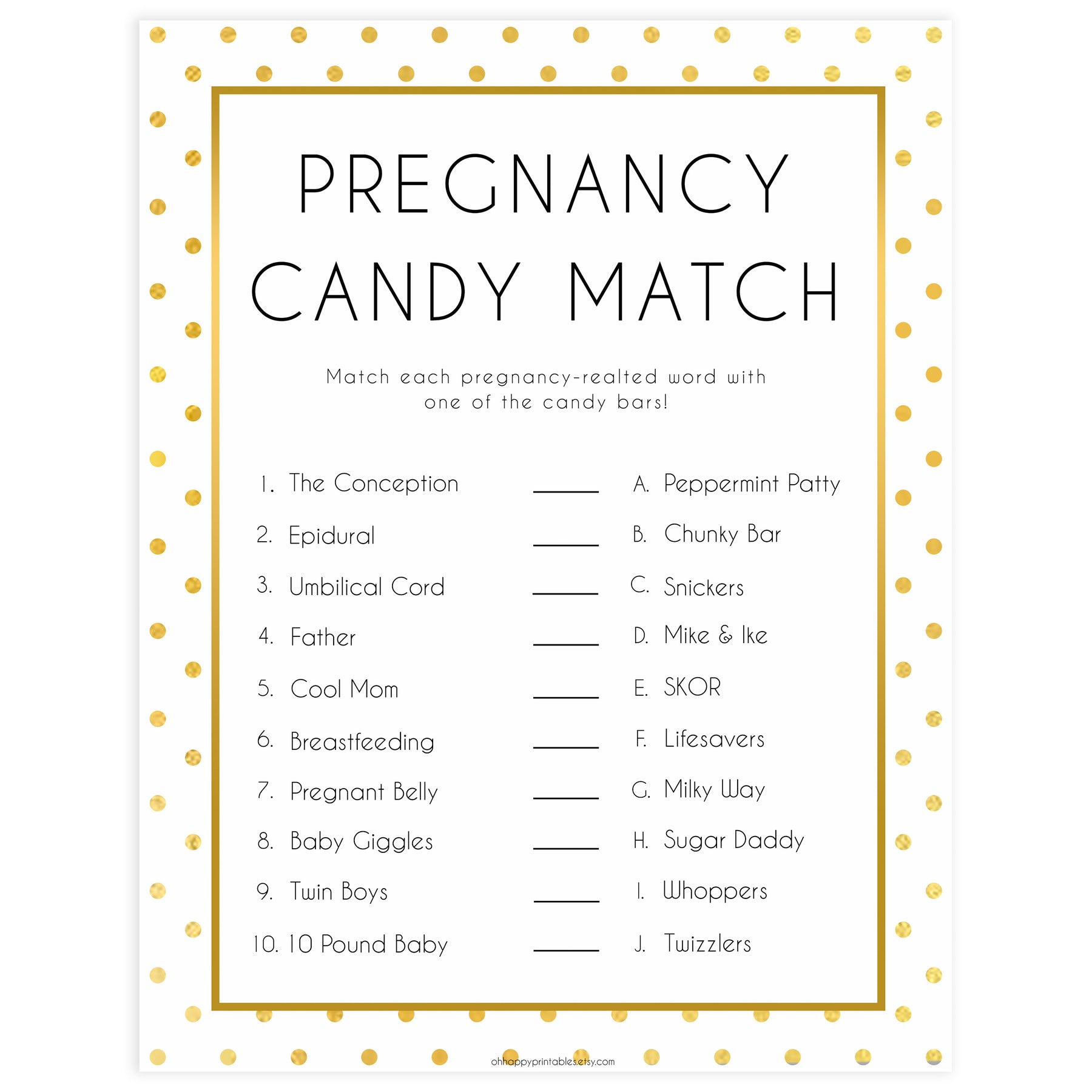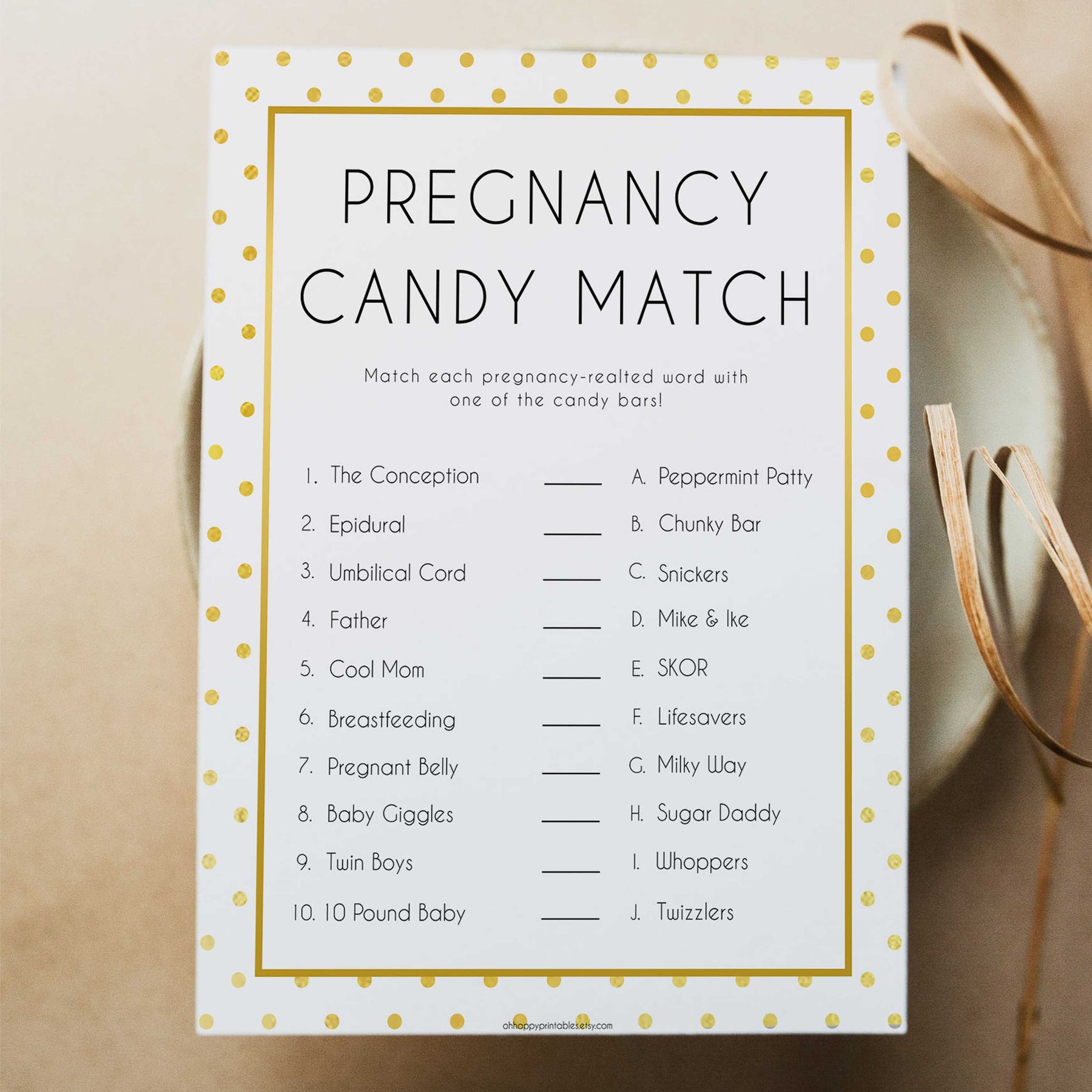pregnancy candy match game,  Printable baby shower games, baby gold dots fun baby games, baby shower games, fun baby shower ideas, top baby shower ideas, gold glitter shower baby shower, friends baby shower ideas