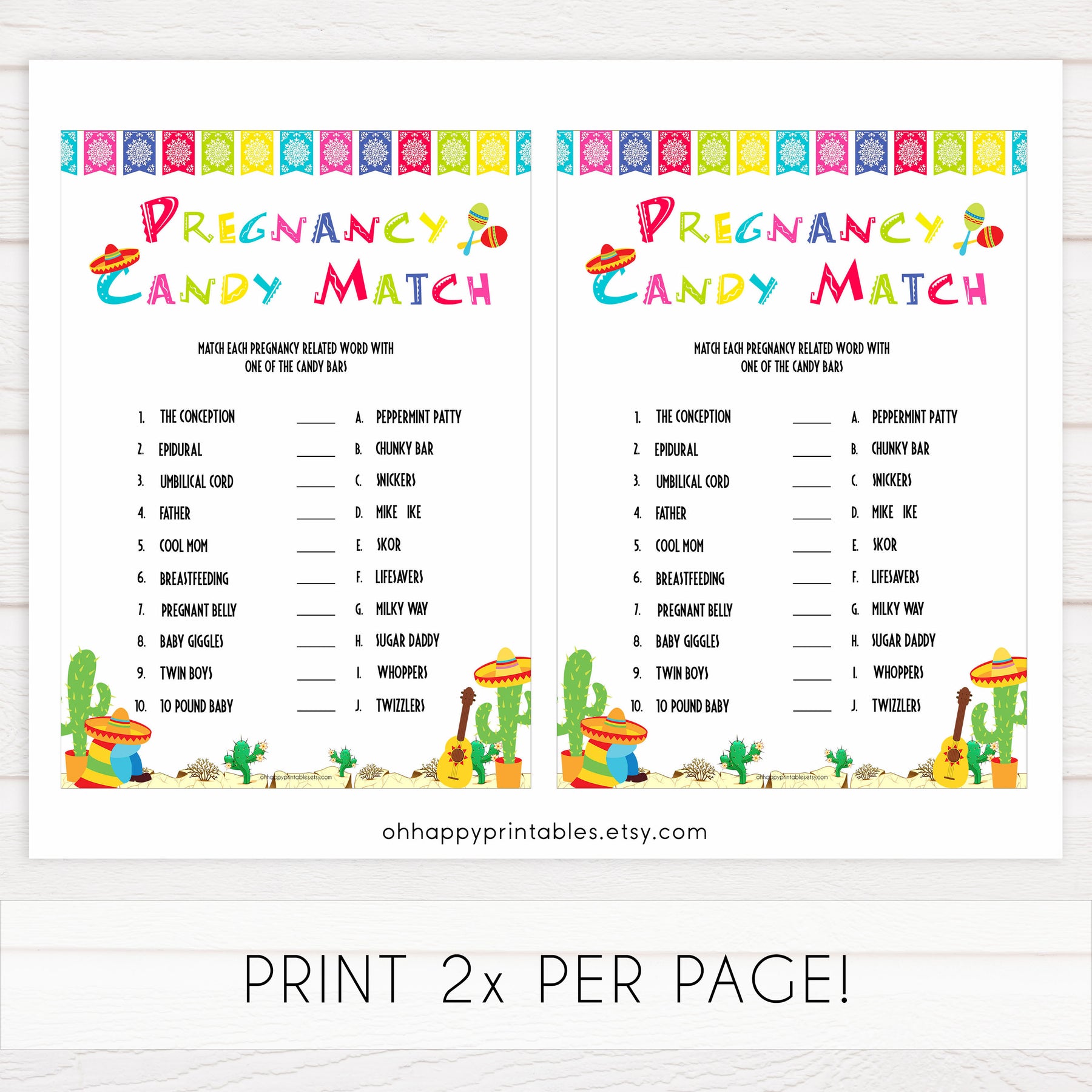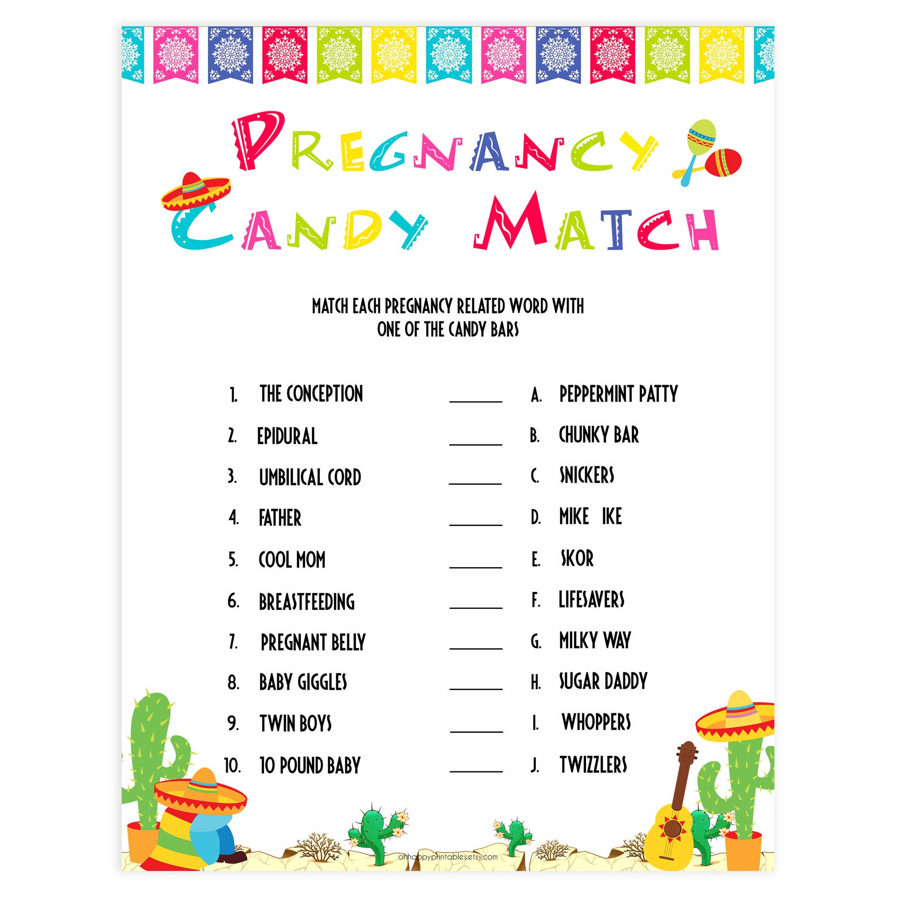 Have your friends fill in the blanks with the Pregnancy Candy Match game. Just download and print at home. The one with the most right answers win.