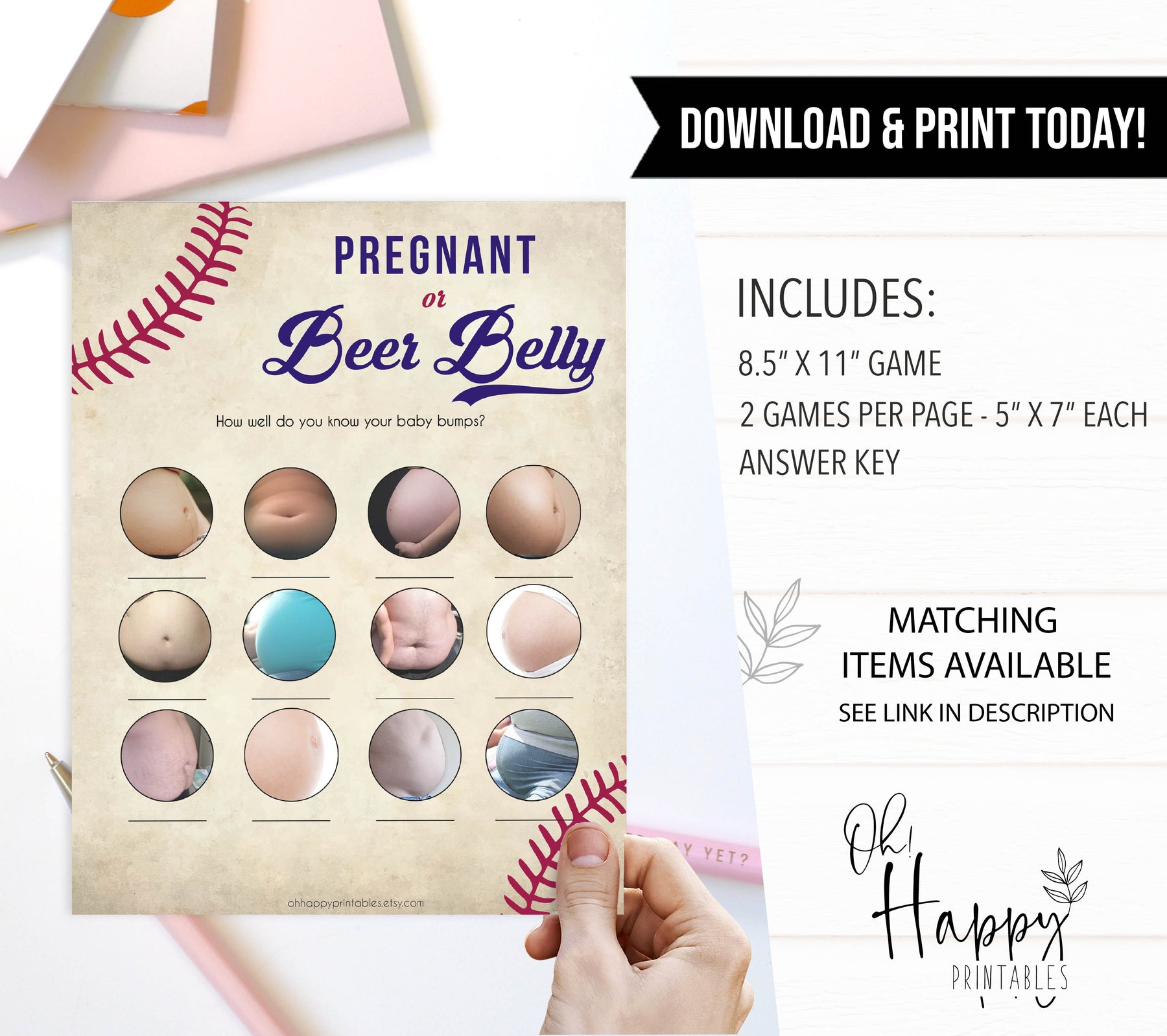 Pregnant or Beer Belly Game, Baby Shower Games, Baby Bump Beer Belly, Pregnant or Beer Belly, Baby Bump or Beer Belly, Baseball, Bump Beer, printable baby shower games, fun baby shower games, popular baby shower games